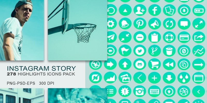 278 Instagram Story Highlights Icons Set . 278 Instagram Story Highlights Icons Set White Symblos in Cyan Color on Rounded Background .