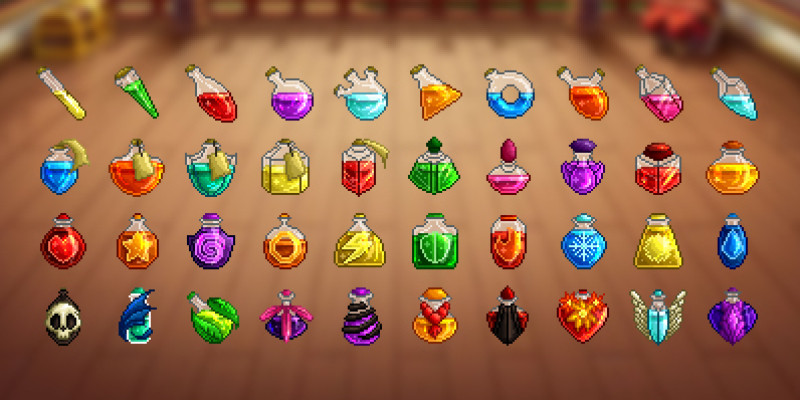 2D Pixel Potion Icon Pack . 2D Pixel Potion Icon Pack – RPG / Fantasy Potion & Elixir Icons