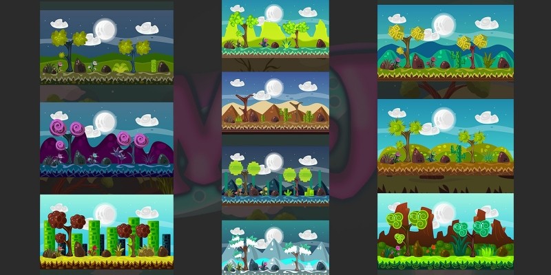 2D Vector Game Backgrounds. 10 Different Background