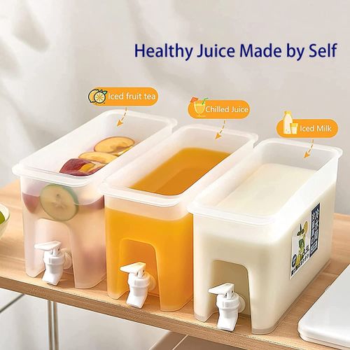Key Features: 【FOOD GRADE MATERIAL】Our beverage dispenser is made of high quality PP material, BPA free and safe to use. 【FAUCET DESIGN】The faucet design allows you to get drinking water by gently pressing the faucet. Designed with rubber ring, anti-blocking, sealing, no leakage. 【HIGH PERFORMANCE】Our water kettle is resistant to high temperatures and low temperatures (-20°C to 120°C). You can pour boiling water directly into the kettle without deformation. 【SAVE SPACE】The body is tailor-made for the refrigerator. With 4 L large capacity while without taking up much space. 【LARGE CALIBER LID】It adopts a large-caliber lid, no need to unscrew, easy to open, convenient to add fruit, add ice cubes, and clean thoroughly, without dead ends.