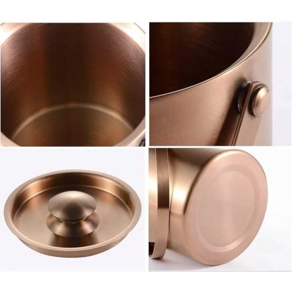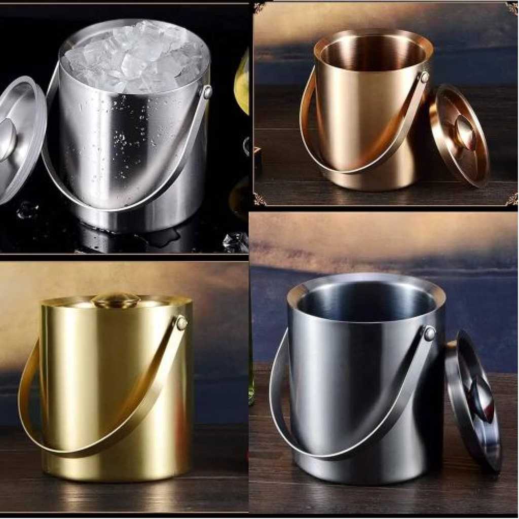 This ice bucket is made from high-quality stainless steel, ensuring it is sturdy, durable, and resistant to rust and corrosion. The ice bucket comes with a sealed lid and tongs, making it easy to use and ensuring that your ice remains uncontaminated, keeping your drinks fresh. 2. Cleaning the ice bucket is a breeze – simply hand wash it with soap and warm water to restore its shine. Please note: never place the bucket in the dishwasher to ensure its longevity and maintain its luster. 3. Don’t hesitate, bring home this adorable bar ice bucket today and make every gathering more enjoyable for your family and friends! Specification Colour: Gold; Silver Size: 1.6L:13.8*14cm 2L:15*15.5cm 3L:18*16.8cm Material: stainless steel Weight: 700/800/900g Product includes:1*Ice bucket;1*Ice clip;1*Spacer