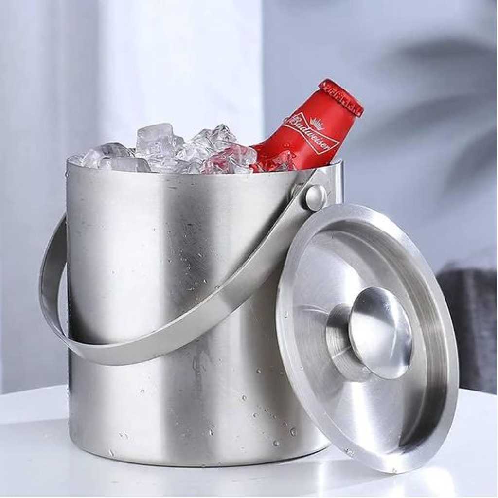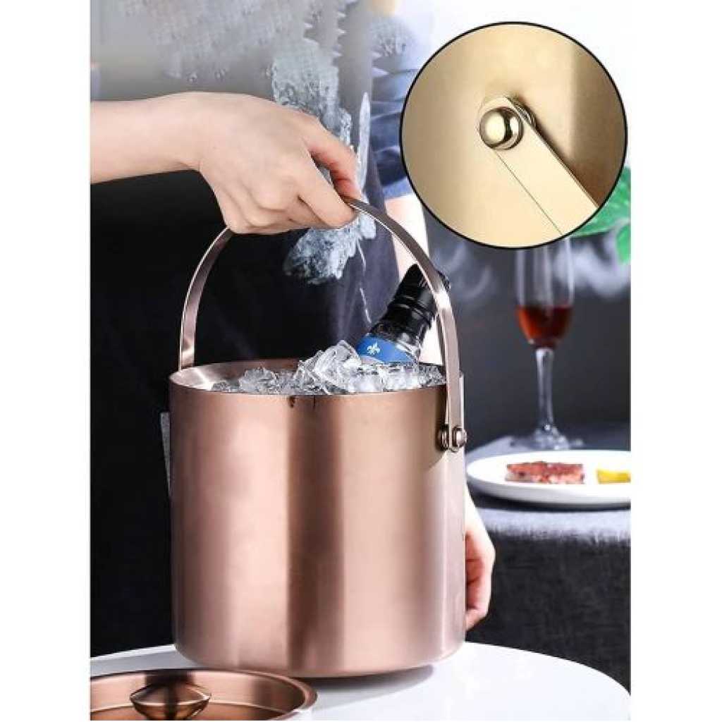 Key Features: High-Grade Stainless Steel Design: This ice bucket and tongs set is made from double-wall stainless steel, ensuring durability and efficient long-term freezing of ice while reducing condensation. Perfect for holding ice cubes, beer, and champagne bottles. Superior Insulation: The ice bucket can keep contents cool at 3℃ for up to 6 hours, ensuring your beverages stay at the optimal temperature. Ideal for family gatherings and outdoor activities. Safe and Convenient Usage: Equipped with a non-slip handle ice scoop and tongs, it allows for easy retrieval of ice cubes without risking finger injury. Prevents mess during ice transfer. Sealed Lid and Ice Melting Filter: The sealed lid effectively prevents ice from melting and contamination. The built-in ice melting filter separates ice and water, extending the lifespan of your ice and keeping your drinks refreshingly cool. Versatile Usage: This insulated ice bucket with lid and tongs is easy to carry, making it perfect for bars, home bars, small parties, BBQs, picnics, parties, bars, clubs, restaurants, and some outdoor activities. The polished high-grade stainless steel material ensures the bucket is rigid, deformation-resistant, and rust-proof.