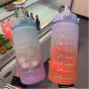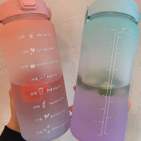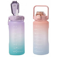 2 L Time Marker Fitness Jug Outdoor Frosted Water Bottle, Color May Vary. 1. Drinking water may help to prevent and treat headaches 2. Drinking more water may help relieve constipation and treat kidney stones 3. Water helps prevent hangovers 4. Water helps to maximize physical performance, drinking more water can help with weight loss 5. Hydration has a major effect on energy levels and brain function, drink more water make your work or sports more efficient Do you often forget or even get tired of drinking water? Choose our motivational water bottle, it will make it easier for you to keep hydrated. MOTIVATIONAL DESIGN Large Capacity: 64oz water is equivalent to 8 cups of water recommended by scientists for humans every day, no more need to refill it frequently Motivational Quote Design: Reminding you stay hydrated and drink enough water throughout the day Time & Capacity Markers: Great for measuring your daily intake of water, it’s nice visually seeing you get closer to your goal and makes you want to reach it sooner HIGH QUALITY & HUMANIZED DESIGH Food Grade Material: Big water bottle made of durable Tritan material, which is 100% BPA FREE, no chemical taste Leakproof: Upgraded food grade silicone O-ring prevent 100% leaks Dust-proof: The spring-loaded dust cap design can prevent dust from entering to your bottle Secure lock: Has one push easy lock/unlock Large Mouth: With a large mouth, this water bottle can easy to fit ice cubes and fruits Two ways to Drink: 2 liter water bottle designed with a removable straw, you can take a swig of water through the mouth or sip upright through the straw Convenient to Carry: Portable water bottle with plastic handle is lightweight, can be easily carried to gym sports, etc