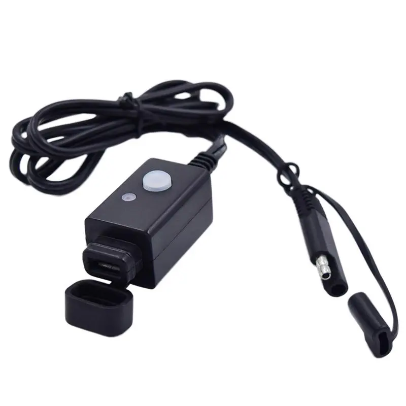 3.1A Vandtæt SAE til USB-lader til motorcykel med afbryder LED-forlængelseskabel