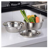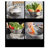 Key Features: Color: Silver Tapered sides and beaded edges for more secure grip Sturdy and lightweight Made of high quality food-grade stainless steel material. Dishwasher safe. The upper drain basin and the lower large-capacity solid basin are convenient for cleaning fruits and vegetables, avoiding dripping onto the countertop. You will get a multi-function vegetable slicer with 4 different julienne blades. Specially designed for soaking and washing food, vegetable, and fruit effectively. Suitable for washing rice, vegetable, fruits, etc. When not in use, you can stack the kitchen strainer and salad bowl to save more space.