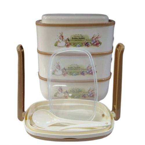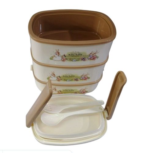 3 Layer Rabbit Lunch Box Container Tiffin – Cream. Food containers are the basic and most common packaging containers we use on a regular basis. These are found everywhere – at homes, in offices, in stores and even in our bags when we are traveling. We often spend plenty or extra to purchase extra nutritious or nutritious food, but if we do not have the right kind of storing containers, we will not be able to keep them in good condition for long. These are specially made for carrying food, keeping food fresh and ensuring that there is no wastage. If you are still in doubt whether to use food containers or not, here are some more reasons which will help you to understand the benefits of using food containers. Highly Durable Portability Food safety Assured No Maintenance/ Easy To Clean Bobby Rabbit dish can be used in the microwave, can be used in the freezer and can maintain the temperature. Bobby Rabbit dish has a plastic spoon.