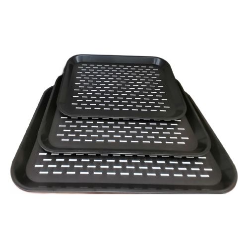 3 PCS Of Rubber Non-slip Serving Trays Platters- Multi-colours. True rubber Trays with the reliability you can expect from such a line of products. This 3-tier rectangular serving tray set consists of 3 different size serving trays: The trick is to find something that will provide perfect aesthetics and functionality no matter what your venue. Whether it’s beans and franks, sushi, or osso buco, these melamine serving tray sets will make your meal a success.
