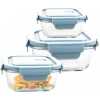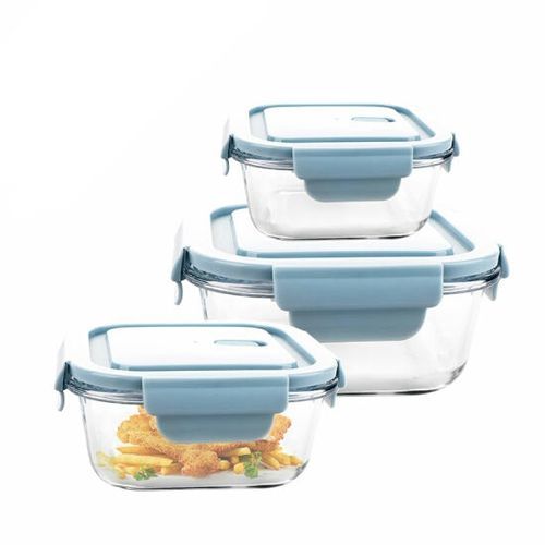 Our container set is great for an active lifestyle – simply prep your meals at home, and then eat on the go.Glass food containers will keep your delicious food tasting like it should! Unlike plastic, glass does not stain or absorb flavors or odors, so food always tastes how it’s supposed to. No harmful chemicals leach into your food so you can always feel good about packing your family’s food here! Sealing ring: It adopts wide-edge design to increase the contact surface with glass, and the sealing effect is better.Lock: Four-sided lock design to lock in moisture.Venting hole: open hole design, open and breathable when using microwave oven, convenient and quick.Glass:Natural & Safe. Glass container made of borosilicate glass,making them absolutely green and health friendly.It can withstand temperatures from -4℉ to 758℉. No strange smells after heated in the oven or microwave. The lids are BPA-free (BPA is an industrial chemical found in plastic that may damage your health). Key Features: Oven safe to 425F Dishwasher safe Microwave safe 3 Pieces of Bakeware set Materials: Borosilicate glass Heat resistant glass 370ml 640ml 1040ml