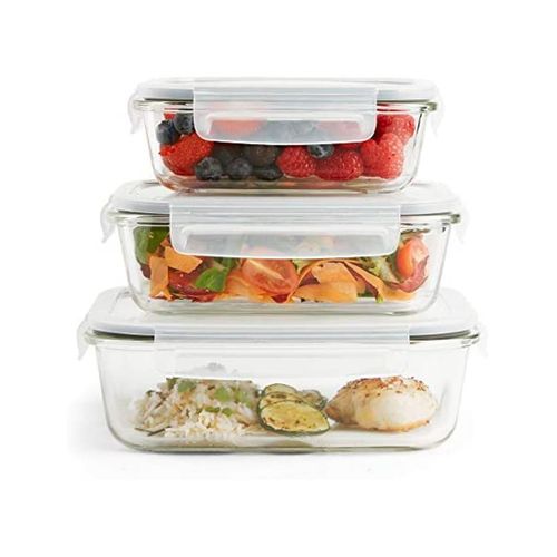 Our container set is great for an active lifestyle – simply prep your meals at home, and then eat on the go.Glass food containers will keep your delicious food tasting like it should! Unlike plastic, glass does not stain or absorb flavors or odors, so food always tastes how it’s supposed to. No harmful chemicals leach into your food so you can always feel good about packing your family’s food here! Sealing ring: It adopts wide-edge design to increase the contact surface with glass, and the sealing effect is better.Lock: Four-sided lock design to lock in moisture.Venting hole: open hole design, open and breathable when using microwave oven, convenient and quick.Glass:Natural & Safe. Glass container made of borosilicate glass,making them absolutely green and health friendly.It can withstand temperatures from -4℉ to 758℉. No strange smells after heated in the oven or microwave. The lids are BPA-free (BPA is an industrial chemical found in plastic that may damage your health).