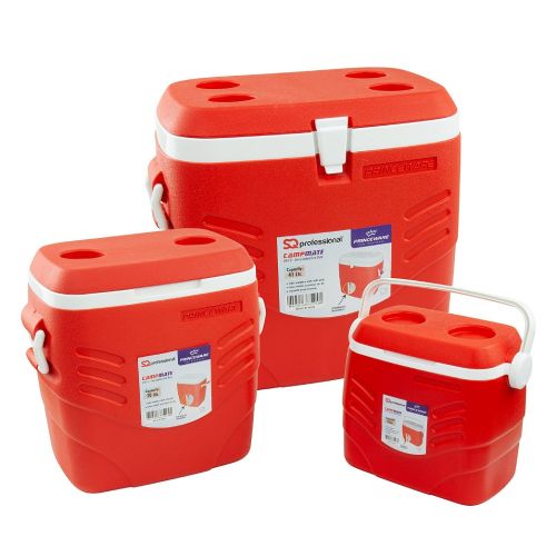 CampMate 3PC Ice Chest with Wheels set is the comprehensive collection of ice chests to keep you refreshed on those long hot days. Whether off to the beach, camping, fishing or hosting a BBQ you’ll be sure to appreciate pulling out a cold drink or fresh snack. Ultratherm insulation in the body and lid provides superior cooling to ensure maximum efficiency and keep your goods chilled for hours on end. In a range of sizes, whether off out alone on a hike, or hosting for all your friends and family, you’ll be sure to find the right box to suit your daily needs. Key Features: Insulated body with polyurethane foam keeps food and drinks cold for longer Stain and odour resistant Two way Handle for easy lifting Tough, impact resistant exterior Easy Drainage Suitable for Camping / Outdoor / Sport Activity / Beach / Picnic BPA Plastic Free Insulated lid Tough rugged exterior Sturdy Wheels & Carry Handle Ultratherm insulation Easy grip Lid locking Side handles 8, 20,41 Litres