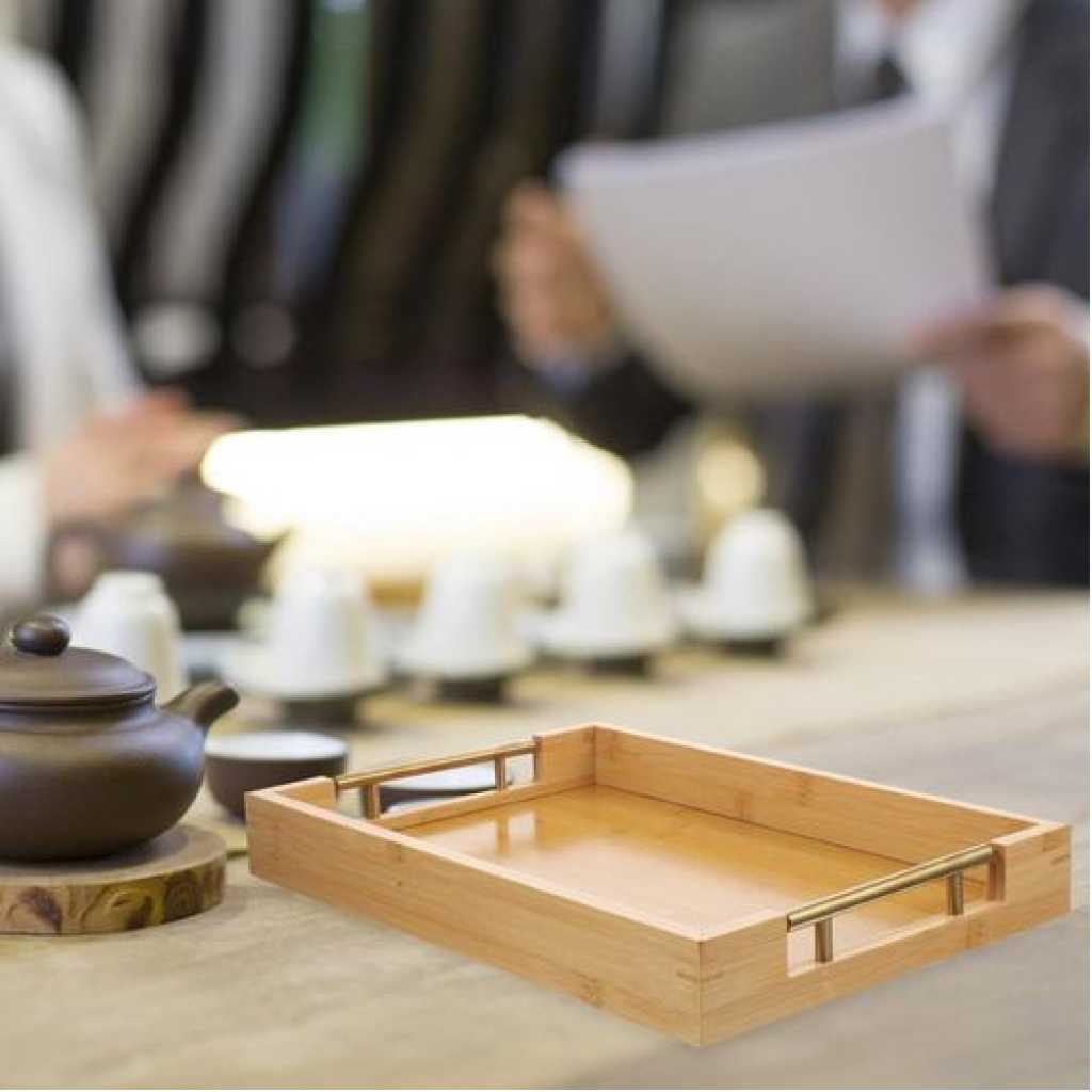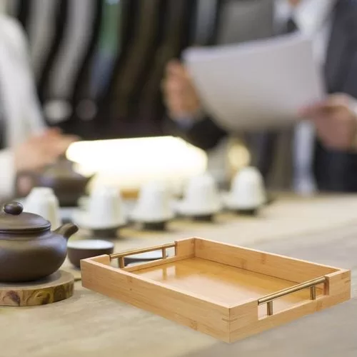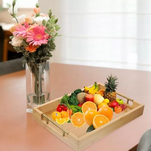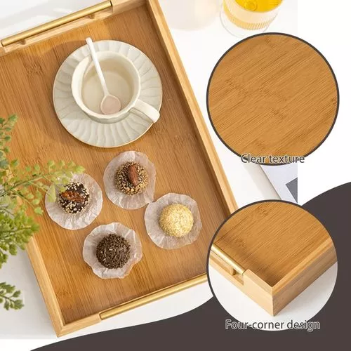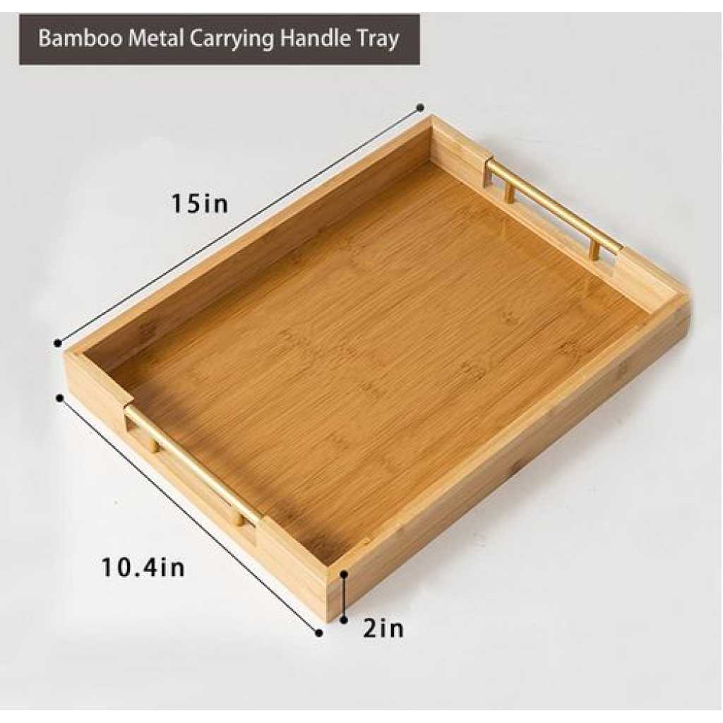 Key Features: Multifunctional Serving Tray: Ideal for eating, working, decorating and storing, this multi-functional rectangular bamboo serving tray is either serving small food & drink or organizing your favorite home goods.The raised edges protect against spills and runaway crumbs and the smooth handles make it comfortable to grip. Convenient Dimensions: Measuring 15.35 inches x 10.43 inches, this elegant serving tray has the perfect size to fit your favorite foods. our bamboo tray can not only meet your daily needs, but also save space for you. Material: Crafted from premium 100% natural bamboo that is durable and sustainable; and helps to reduce carbon dioxide gases blamed for global warming. Easy To Transport: The serving tray great for any kind use – The aesthetic handles allow for easy carrying of food from the kitchen to living room, patio, bedroom or bathroom. Even if the rustic serving tray is jam-packed with items, you will have a firm grip. Easy to Clean: The smooth surface makes it easy to wipe down with a wet towel or rinse off with water. Just scrub with a damp cloth and allow to dry,easy to clean and wash. Resistant to crumbs and spills so you can keep your space clean.
