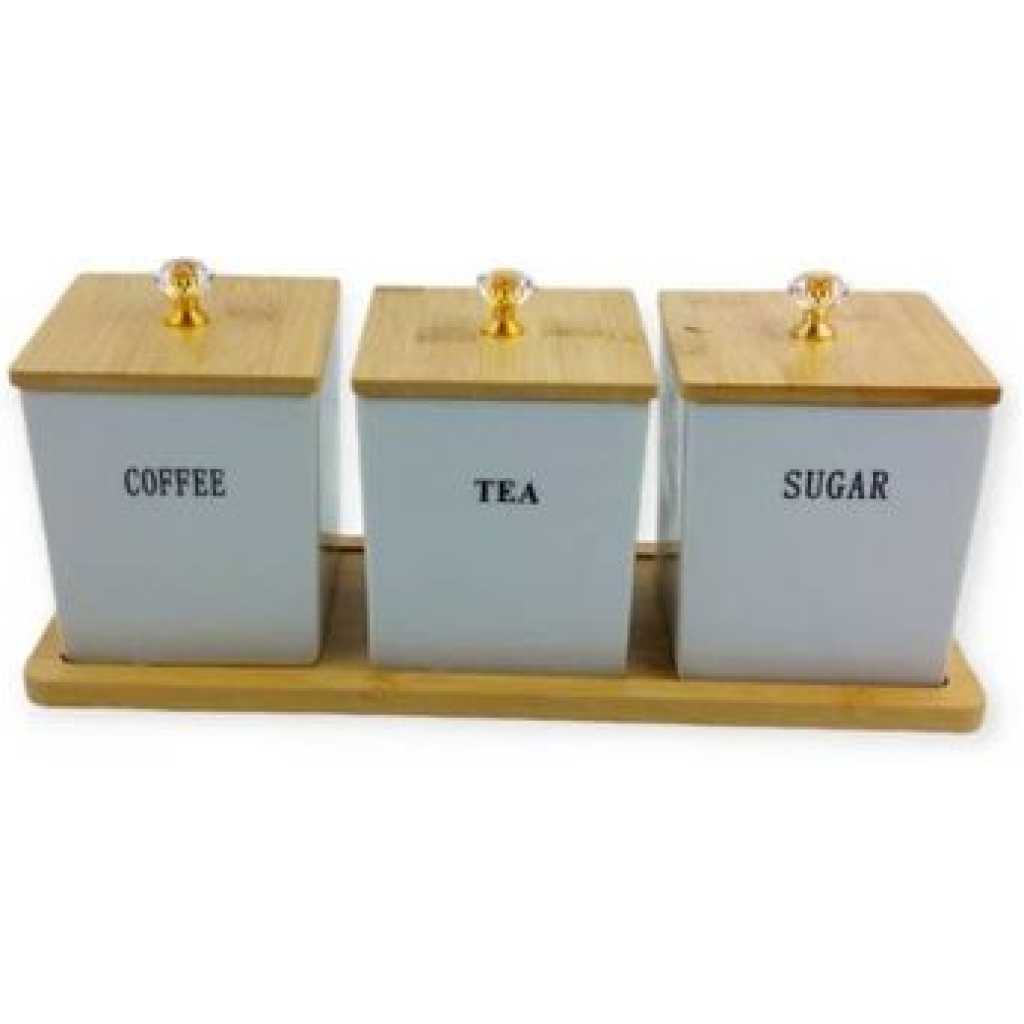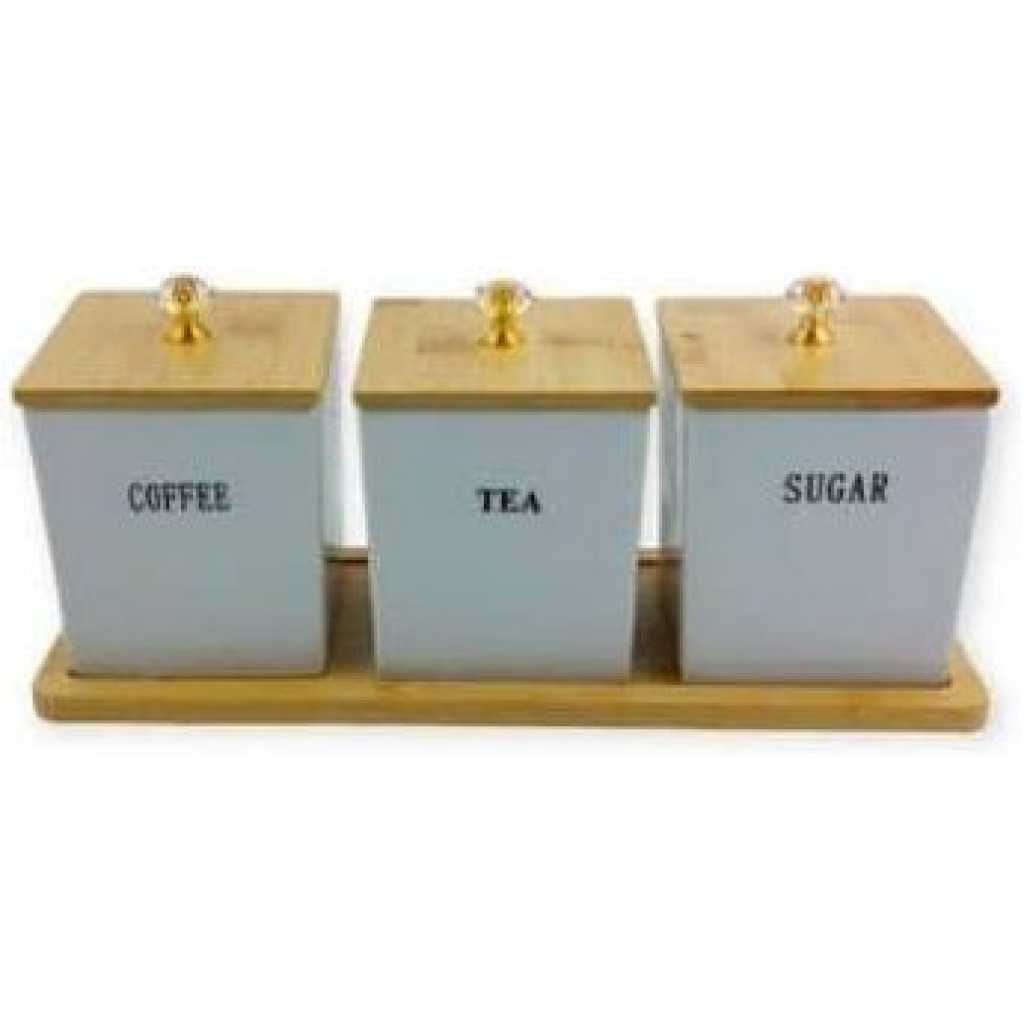 Key Features: STYLISH DESIGN: These stylish tea coffee and sugar canisters set will fit perfectly in all kitchen decors. The canisters and the rose gold lids are designed to impress, and these tea coffee sugar canisters will give your kitchen a modern and stylish aesthetic! SUPERIOR QUALITY: The premium quality coffee tea sugar set was made with durable and sturdy, powder-coated metal. The pressure fitted airtight lid ensures the freshness of your teas, coffees and sugars. The Lids open easily so you can get your ingredients out effortlessly, and you won’t spill out your ingredients like in other types of canisters. LARGE CAPACITY: The large capacity of these coffee tea sugar set allows you preserve more tea, coffee, sugar, spices, or any dry ingredients for a longer period. MULTIFUNCTIONAL & PERFECT GIFT: Not only can these tea sugar coffee sets be used for storing tea, sugar and coffee, they can also be used for keeping biscuits, ers, salt, spices and other dry ingredients fresh. This kitchen canisters come with an elegant gift box, making it a lovely kitchen gift that your loved ones will greatly appreciate. They are perfect gift for Housewarming, Christmas, Weddings, Mother’s Day, etc. COMPACT AND CONVENIENT STORAGE SPACE◈ Each of the 3 Canisters included in this set measure in at 6.75″ in Height x 4.5″ in Diameter