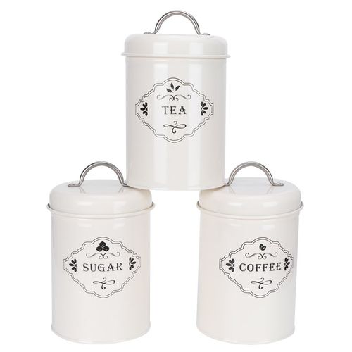 Key Features: 3 Piece Tea Sugar Coffee Canister Sealed Jar Storage Container Cans- Cream. Made of high-quality, durable, and environmentally friendly thickened iron, it can be used for a long time. The sealed jar with a lid design, dustproof, can your coffee, tea, and sugar away from water and dirt. The 3pcs set airtight jars allows you to conveniently store different items such as tea, coffee, and sugar. It can better retain the taste of the storage, and the mouth of the can have a sealed design. The sealed jar is a good kitchen assistant and home decoration, beautiful and practical.