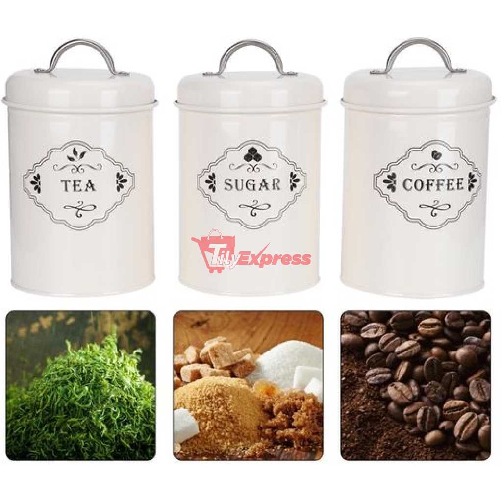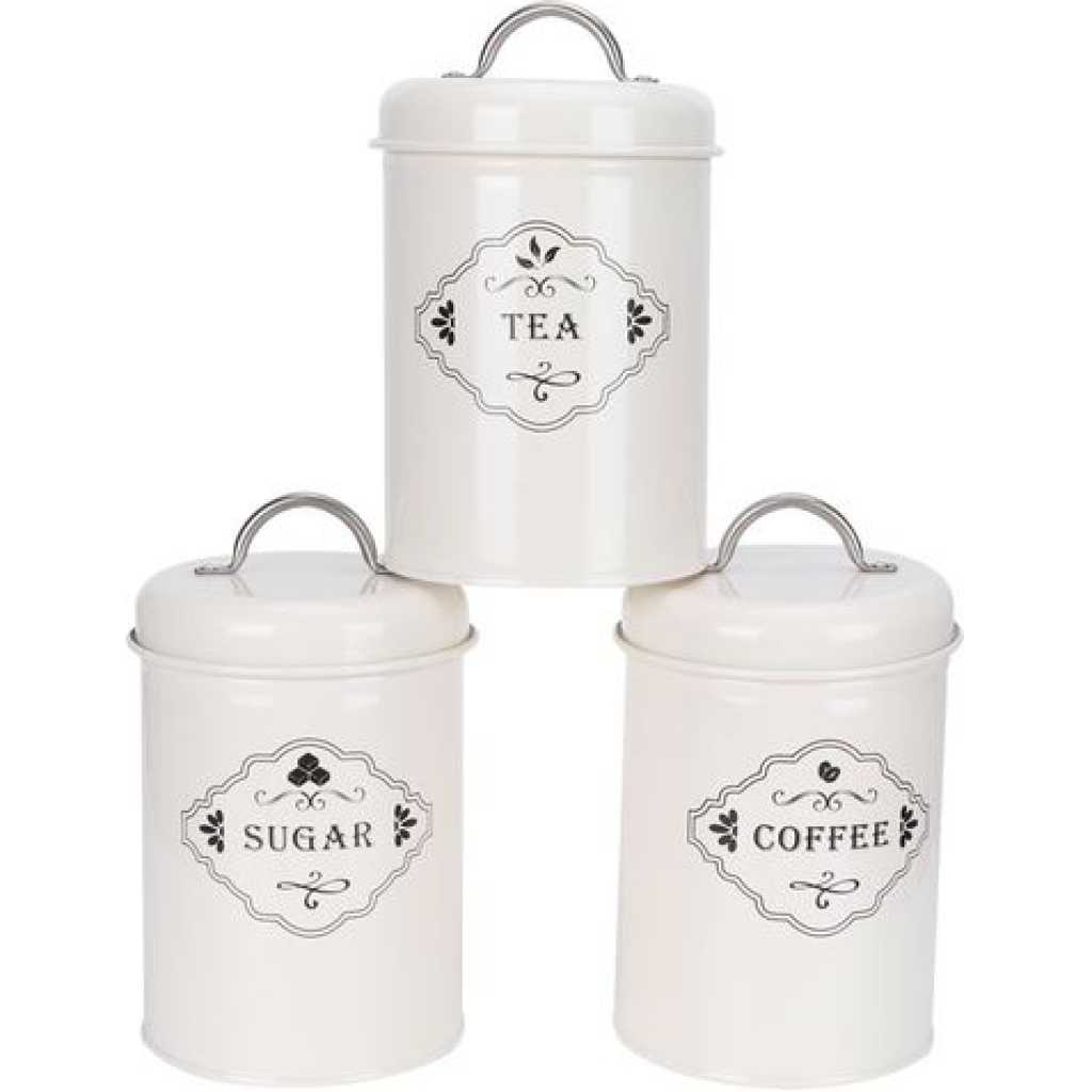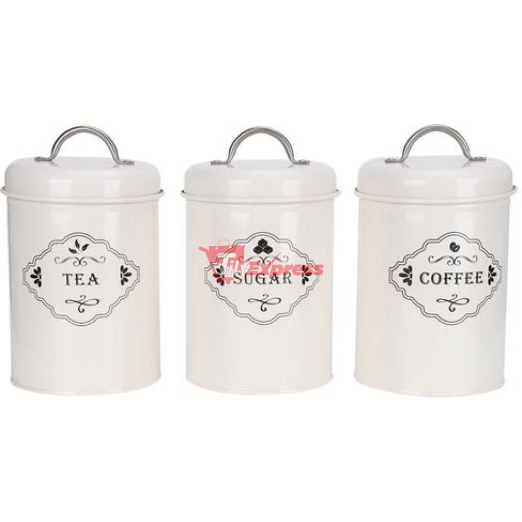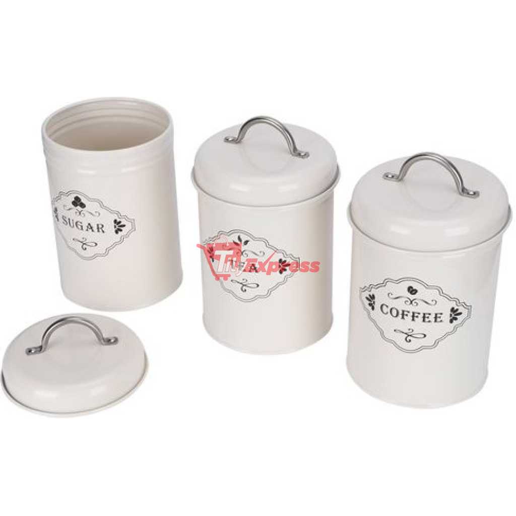 3 Piece Tea Sugar Coffee Canister Sealed Jar Storage Container Cans- Cream. Tea Canister, Sealed Jar, Kitchen Storage. The perfect blend of beauty and utility, this Three-piece metallic jar set is what you need to store your items attractively in your kitchen. The Set contains 3 jars with a lid. STYLE & VERSATILITY – Whether given as a gift or used in your own home, these modern-inspired canisters offer the perfect blend of style and sophistication along with terrific versatility, these containers will surely add charm to any kitchen KEEPS CONTENTS FRESH AND DRY – Ceramic lid creates an airtight environment to keep contents dry, fresh, and free from insects or odors. SIMPLE, SOPHISTICATED, FUNCTIONAL – Set of 3 jars with inspired canisters for sugar, tea, and coffee only. MATERIAL AND CARE TIPS – Heavy-duty ceramics are dishwasher-safe. Item Type: Kitchen Storage Jar Material: Iron (Powdered) Weight: Approx.905g/31.9ozProduct Size: Approx. 11 x 19cm/4.3 x 7.5in Specifications: 3Pcs Set (Sugar Jar, Coffee Jar, Tea Jar)