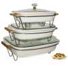 3 Pieces Of Ceramic Chafing/Serving Dishes Warmer, White. Use Soup Warmer to warm up your family’s favorite dishes. This warmer comes with a supporting leg, as well as a candle holder to ensure that the soup is kept warm as it is served. The container is made of quality heat-resistant glass, with stainless steel legs. Key Features: 3 Pieces Of Ceramic Chafing/Serving Dishes Warmer, White. Tea light candles provide heat to keep food at proper serving temperatures Resists stains and hence is easy to clean The well-contoured handle offers a comfortable grip Bowl material: Ceramic Stainless steel support legs