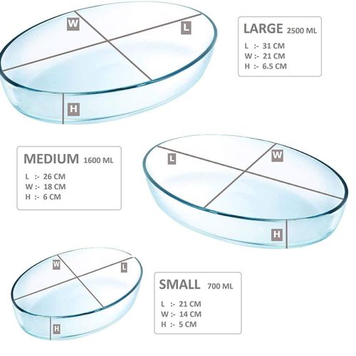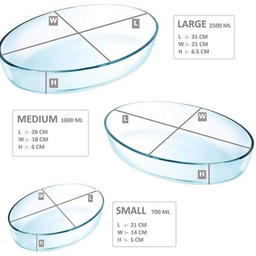 Key Features: 3 Pieces Of Glass Baking Dishes Set Casserole Oval Baking Bowl Pan Clear Bakeware Set, Pans for Cake Dinner, Kitchen Serveware Bakeware- Clear Ideally sized casserole pans enable you to create a full dinner. Stackable, the dishes are easy to carry and store. Of supremely tough, tempered glass, heat is evenly distributed, avoiding burnt spots. Safe for a pre-heated oven, microwave, freezer, or top rack of the dishwasher. This bakeware set includes 3 pieces of bakeware of different dimensions: 10 x 7 x 2.4-inch, 11.7 x 8.2 x 2.4-inch, 13.7 x 9.5 x 2.6-inch. Ideal for baking casseroles, pastas, breads, meat loaves, and pound cakes. Also the perfect pan for freezing a variety of ice cream logs. For any questions about our bakeware set, please feel free to contact us first, customer service will solve it to your satisfaction.