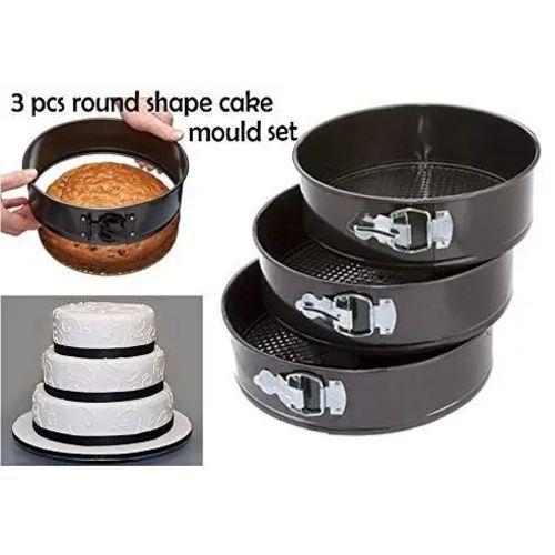 Nonstick Aluminum Cake Mould Nonstick Aluminum Mould washable and reusable cake mould set features three different round moulds that can be used to bake a variety of cakes. When using these moulds in a microwave, it is recommended that you use the convection mode of your microwave oven. This bakeware can help you create elaborate cakes for birthdays, anniversaries or festive occasions. You are guaranteed effortless clean-up and a dependable option every time you want to bake a sweet treat for your family or friends. The sturdy metal construction ensures that this pan will help you create plenty of delicious treats for friends and family. Non-stick coating for easy food release and cleanup. Heavy-gauge construction provides even-heating performance, Even heating for better browning & Baking. Food grade Xynflon coating. Designed precisely for modern contemporary kitchens. Material – Carbon Steel. Can be used as a baking pan or cake pan. Suitable for electric, gas and hot-air ovens. Perfect cake mold for baking cakes. Ideal for both beginners and experienced decorators. For baking cake in Microwave use only convectional mode. Washable and re-usable moulds. Hand wash in hot soapy water.Avoid abrasives or sharp utensils. Make Whatever Your Baking Imagination Desires In This Mould. This simple, easy to use set allows you to precisely and professionally add that magic to party. Fresh, warm, wholesome, and made in minutes, enjoy your own homemade cakes, muffins, breads, cookies and much more with the Cake Decor bakeware, available in a variety of styles, shapes and sizes to suit just about every baking need. Baking at home is fulfilling and rewarding, it’s an experience to make your own cake and learn the skill of good baking. Home baked food has obvious health benefits and you will never get it more fresh than straight from your own oven. You can share your bread with friends and family so they can also enjoy the benefits and the taste. Cake Decor brings you a premium line of bakeware nonstick aluminum muffin mould specially designed for the home baker to enjoy professional baking results at home. Care: Before the first use, remove all packaging and wash bakeware in warm, soapy water. Rinse with clean water and dry thoroughly.To keep your bakeware in premium condition, only use wooden, silicone or non stick utensils and never cut on the bakeware surface. Always place the bakeware on a firm, flat surface. Cake Decor bakeware nonstick aluminum mould is oven proof up to 230° C. Please use an oven glove or mitt when removing from the oven. Cake Decor bakeware is dishwasher safe. We recommend removing any baking residue prior to placing in the dishwasher. If hand washing, wash in warm soapy water, rinse with clean water and dry thoroughly. Soak stubborn food built-up in hot soapy water then rub with a non abrasive sponge. Do not use steel wool. Avoid using abrasive cleaners or scouring pads as they may alter the performance of the bakeware.