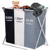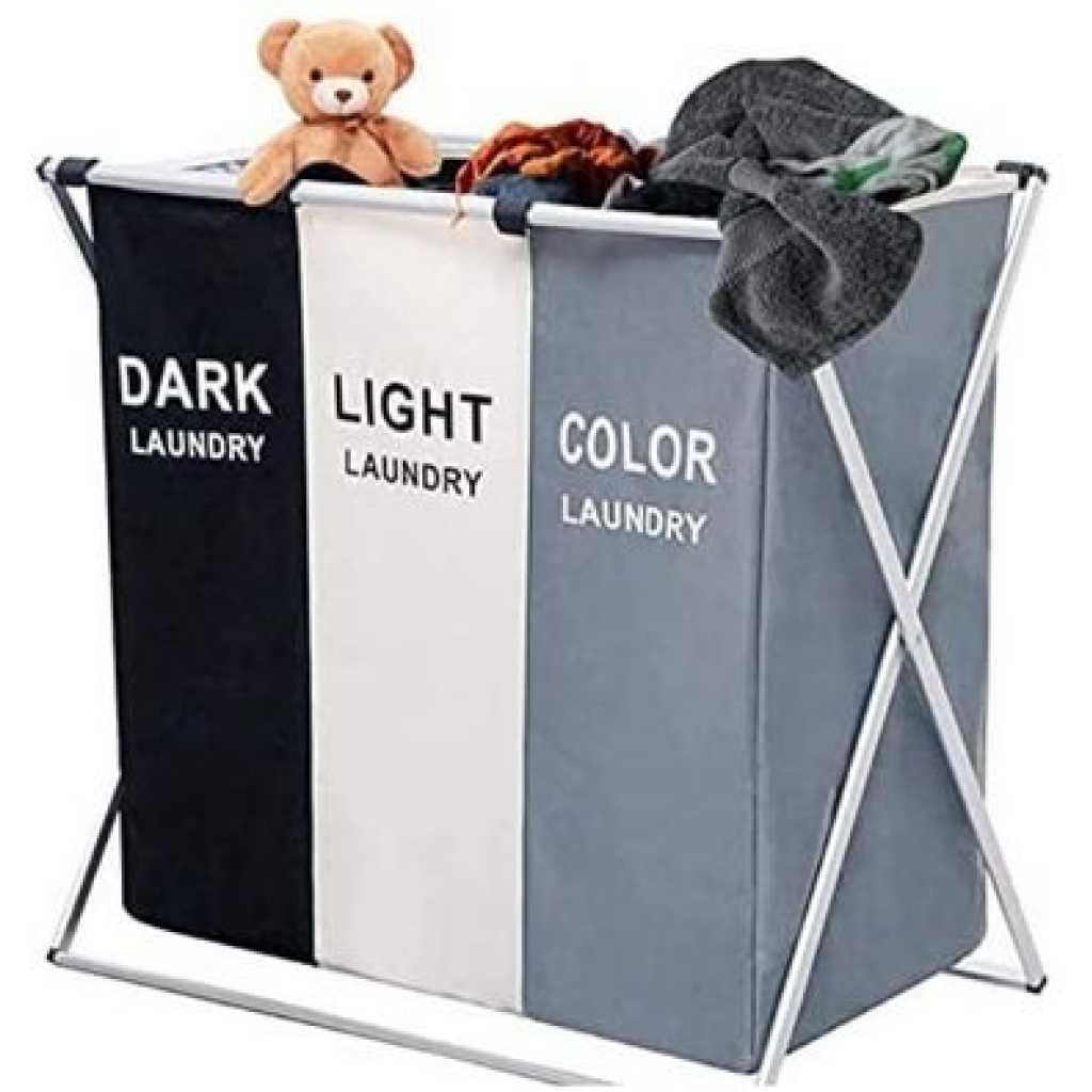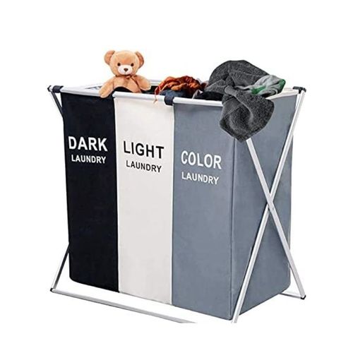 3-Section Laundry Basket Bin Organizer- 137L- Multi-colour. Superior Stability and Waterproof – Made of oxford fabric and aluminum X frame, making it stable and waterproof, can be folded when not in use Lightweight and Easy Move – Being lightweight yet durable for frequent use, convenient for little kids and the aged. The sturdy carry straps make the clothes basket easy to move Easier Laundry and Excellent Decoration – Sorte cothes immediately after changing clothes to save time and reduce stress for tedious laundry time. The laundry bag itself can be regarded as a good decoration no matter in laundry room or bedroom etc A practical and creative gift – ideal for big families, co-workers, friends, kids or yourself on big days that make the daily task of washing clothes more joyful. /Reminder: To wash the laundry basket, pls wipe it with a wet cloth