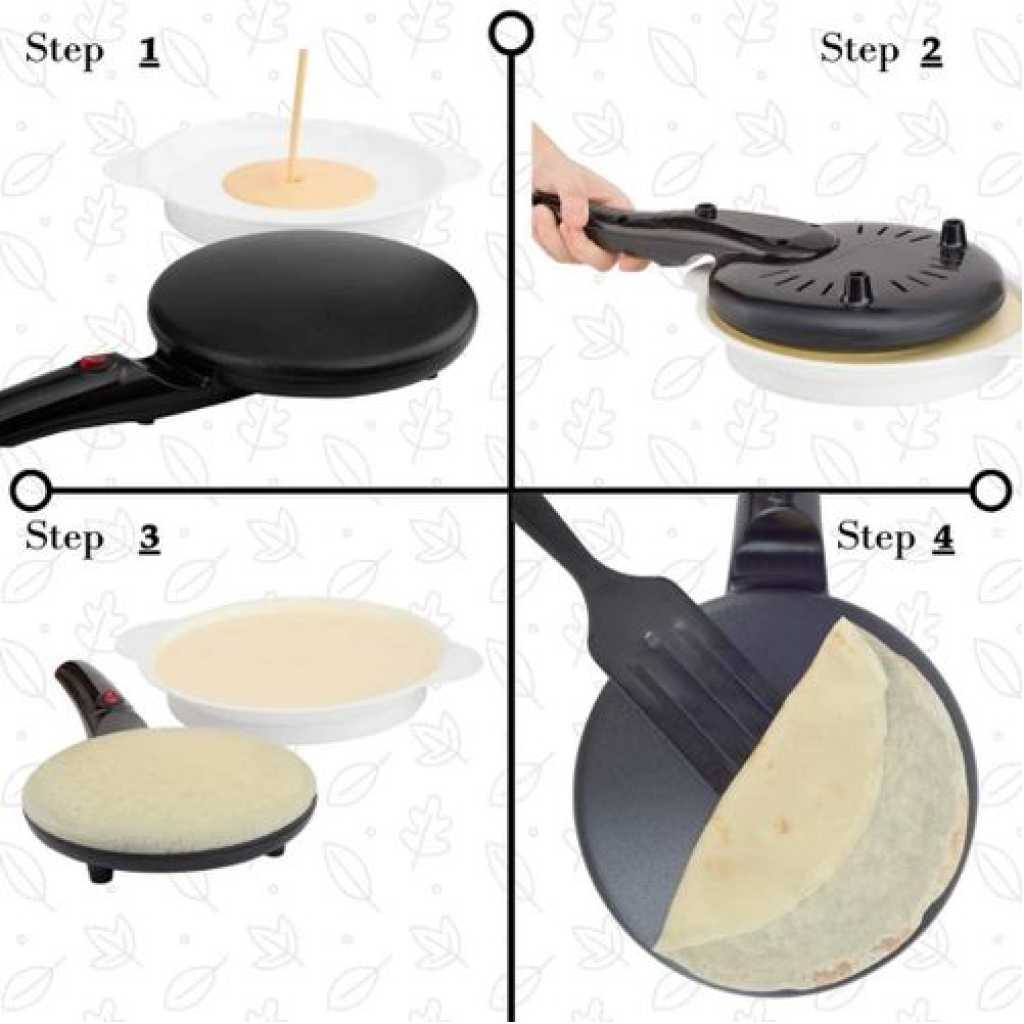 3 Steps Non-stick Electric Chapati Pancake Crepe Maker Crepe Pan Portable Crepe Maker Nonstick Crepe Maker for Crepes, Pancakes, Tortillas, Kitchen Cooking Spring Cakes, Spring Rolls Making