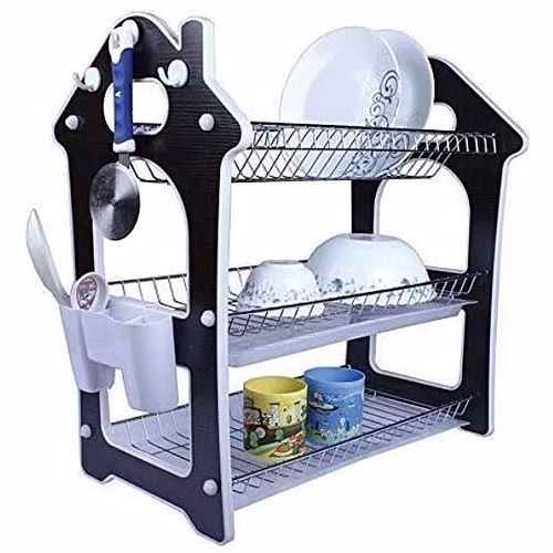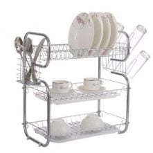 This Double Layer Dish Rack is a handy kitchen accessory which should be found in every home for it lets you neatly arrange your plates, spoons, forks, knives and other utensils. After washing your plates, you can stack them on this dish rack so as to drain the water completely. It has a compact design so space will not be an issue in your kitchen. It is made from high grade stainless steel which makes it highly durable. It will remain rust free no matter how long you use it. Its lovely design makes it fit perfectly with your kitchen decor. This dish rack can hold a number of plates and cutlery’s at a particular time Key Features: Space saving design High quality carbon steel with chrome plated finish Sturdy construction Easy assembly, no tools required Freely adjusting each shelf’s height