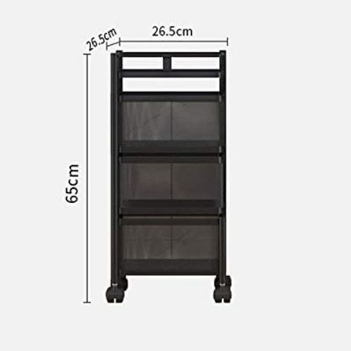 3-Tier Kitchen, Bedroom, Bathroom Storage Rack Basket Trolley Organizer Breathable: encrypted wire mesh breathable basket keeps fruits and vegetables fresh; hollow breathable top, fruits, and vegetables, not easy to rot. 【Comfortable】 Rotating basket design, it is more convenient to receive directly, rotary, more convenient to receive, uses vary; the layer removal is raised on both sides of the fence protection to protect the product, safer. 360° free movement: at the top of the table memory density, no change of the room and the storage cape, the solid does not scream movement Multi-use: set the living room, with beautiful and light participation fruit snacks that are easily stored and neatly placed. Place the bathroom, it is a landscape product that is not messy, you do not need to clean the bathroom. Set the kitchen, is your good helper, cook good food without any excitement. Welcome to our shop, our products are constantly updated and welcome to keep alert. Product Name: Kitchen Shelf Product style: floor type Product size: 2f: 47 x 26.5 cm. 3f: 65 cm x 26.5 cm. 4f: 80 cm x 26.5 cm. 5F:95cm x 26.5cm Product color: black. Product material: carbon steel of paint, baking. Storage scenario: kitchen storage, bedroom storage, living room storage Features: protective fence design, movable pulley design, multi-layer storage space saves space, beautiful and stylish This product only sells kitchen shelves and does not contain any other items. Note: The 2F storage rack has no wheels, only 3F 4F 5F have wheels.
