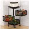 Key Features: 3-Tier Kitchen, Bedroom, Bathroom Storage Rack Basket Trolley Organizer Made of sturdy metal wire with rollers at the bottom. Stainless steel material Multi-functional not only some fruits, but also place some hot pots The baskets can be used on their own or stacked one on top of the other Perfect for keeping fruits, vegetables, Toys, boxed foods, etc Color: Black material: steel, epoxy powder coating