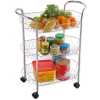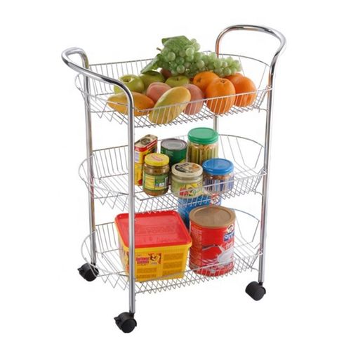 Key Features: Made of sturdy metal wire with rollers at the bottom. Stainless steel material Multi-functional not only some fruits,but also place some hot pots The baskets can be used on their own or stacked one on top of the other Perfect for keeping fruits, vegetables, Toys ,boxed foods