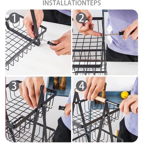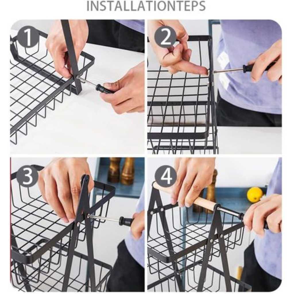 Key Features: 3 Tier Portable Fruit Basket Stand Vegetable Bread & Snacks Detachable Metal Rectangle Basket With Wooden Handle Modern for Kitchen Decoration- Black 3-tier fruit basket – makes good use of the crowded counter space to organize everything and save space for storing fruit, vegetables, snacks, bread, and more. Durable This fruit holder is made of a sturdy and durable metal frame that is strong and durable. The fruit basket is coated with black baking paint to ensure rust resistance and durability. Easy to install – Simple construction for your installation. Comes with installation tools and installation instructions. International products have separate terms, are sold from abroad, and may differ from local products, including fit, age ratings, and language of product, labeling, or instructions.