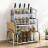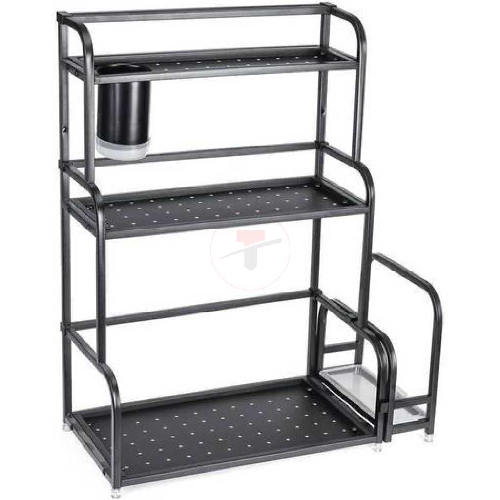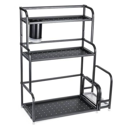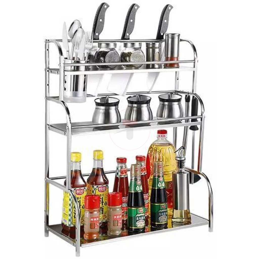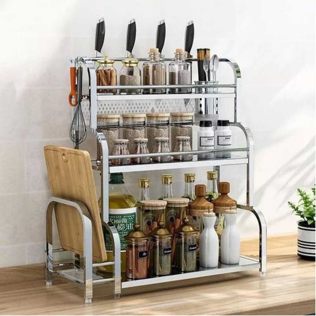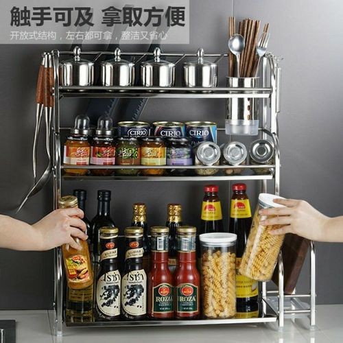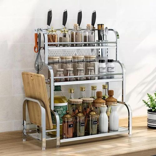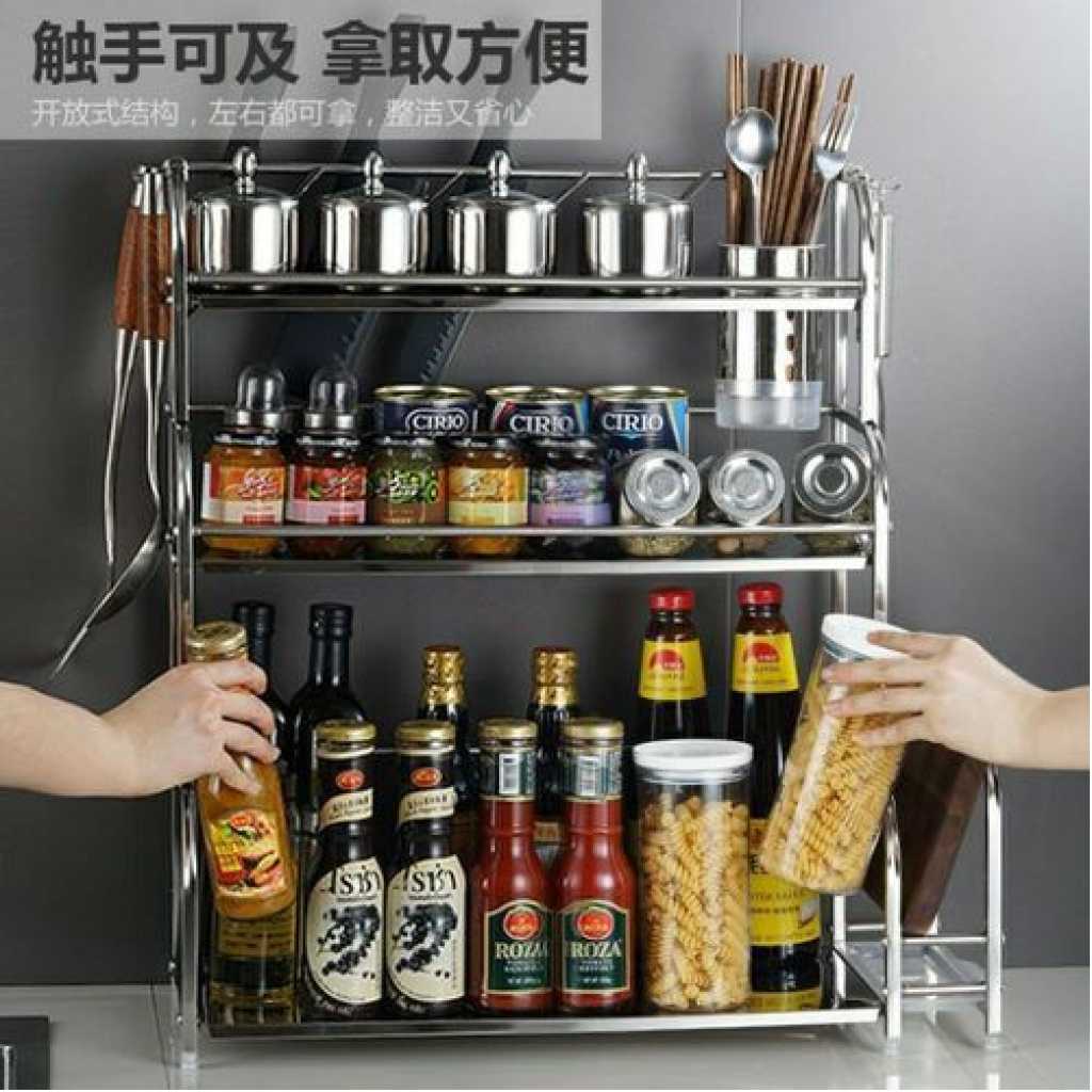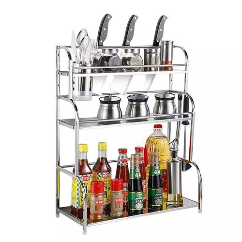 3-Tier Spice Rack Organizer Spice Jars Bottle Stand Holder Kitchen Storage Shelves + Hanging Hooks- Multi-colour. 【Product Size】 The 3-tier free-standing countertop multi-purpose rack is enough high and wide, you can easily accommodate most spices jar or other things, to save more empty for your kitchen. Pay more attention: Only the rack included 【Multi-Purpose】- The spice rack can be applied to any room, such as the kitchen, bathroom, and storage, perfect for storing spices, jars, salt & pepper shakers, you also can use the standing rack holder to storage your soap, shampoo, cosmetics and so on in your bathroom 【Durable and Stable】- Durable metal frame with minimalist Chinese style. The spice shelves are made of metal with chrome plating that is rust-resistant, very strong, and can bear more weight. 【Organized Space】-Put your usual spices seasonings organizer and cans together for easy use and cleanliness. Key Features: 3-Tier Spice Rack Organizer Spice Jars Bottle Stand Holder Kitchen Storage Shelves + Hanging Hooks- Multi-colour. – Saving Space: This kitchen rack organizer helps you save time to find spices, baking supplies, and soy sauce are within reach to keep your kitchen looking organized. – Easy to use. No need to drill, it can be attached to any metal surface without punching, and it has a strong bearing. You can stick it on the side of the washer/dryer in the laundry room. – Multiple Use: You can place a ton of things, such as paper towel rolls, cruets, etc. and it comes with 6 hooks for hanging kitchen utensils. – Stylish modern elegant design, matte white/black perfectly match with any decoration of home design. – Saving Space – No need to drill – Stylish modern elegant design – Multiple Use: You can place a ton of things. Style: Nordic Material: metal + powder spraying Shelving Category: kitchen Layer number Specification): 3-layer seasoning rack Color: Multicolor Size: 35cm*18cm*38cm