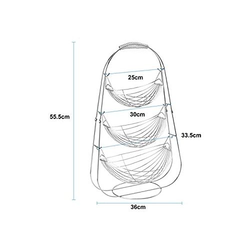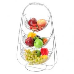 Key Features: Fruit storage made very easy High quality Made of stainless steel Price is a limited time offer, and this is 100% satisfaction guarantee. Fruit bowl 3 level triple hammock design to artfully display your fresh produce Fruit bowl centerpiece Chrome metal construction for durability and sophisticated looks. Ideal kitchen storage solution or an eye-catching centerpiece for your counter top. Also makes a perfect gift Fruit bowls for the counters Bowls can easily be removed to use as separate serving pieces 14″ W, 23″H, 12″ D Sturdy steel construction