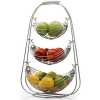 3 Tier fruit storage basket Store and Display: This 3 Tier Chrome Triple basket does multi duty, storing a large amount of fruits, while also making produce or products easy to see and select. Provides unparalleled air circulation to your fruits and vegetables to keep them fresher longer. 14″ W, 23″H, 12″D Sturdy steel construction. Multipurpose Baskets: The two baskets can storage different items, including fruit, vegetable, bread, snacks, or your kitchen items. Organize & Entertain: Perfect everyday fruit vegetable storage in kitchen, supply room, etc¡ªGreat for entertaining in dining area, buffet, restaurant, indoor/outdoor event. Sturdy Construction: Not just a good decoration, made of sturdy metal, with a good bearing weight capacity, Ideal kitchen storage solution or an eye-catching centerpiece for your counter top, also makes a perfect gift for any occasion. Description FUNCTION Open design helps fruits and vegetables to evenly ripen. Stacked bowl arrangement creates easy access to stored items. Provides unparalleled air circulation to your fruits and vegetables to keep them fresher longer. Give a great housewarming gift basket filled with fruits, crackers, artisanal cheeses, and more of the recipient¡¯s favorite things! Perfect Gift Chrome metal construction for durability and sophisticated looks. Ideal kitchen storage solution or an eye-catching centerpiece for your counter top. Also makes a perfect gift for any occasion – including housewarming, weddings and birthdays.