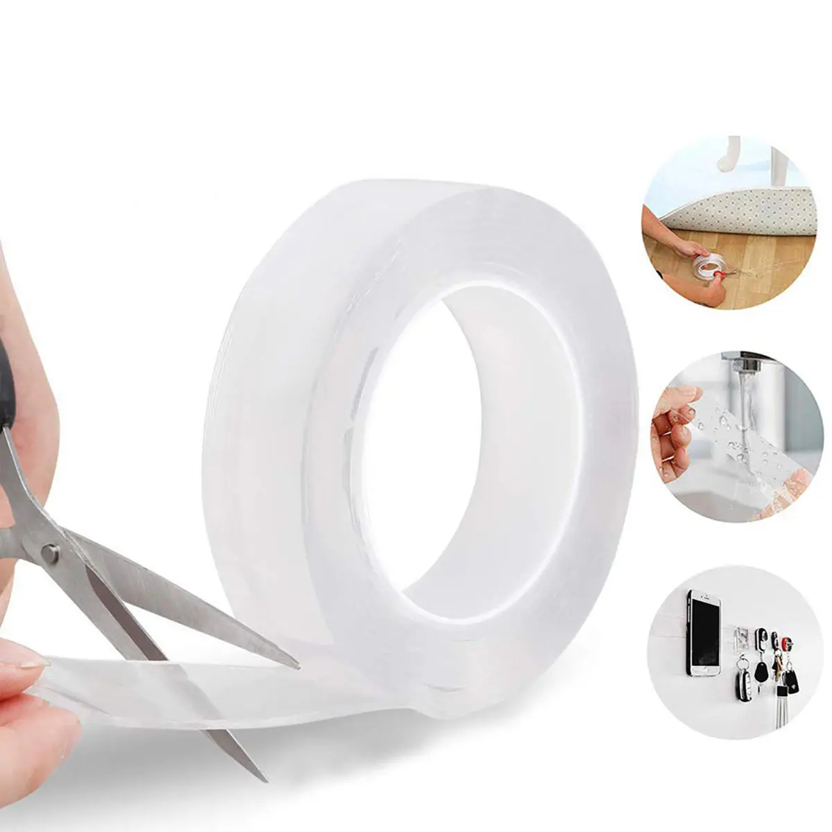 300cm x 0,3cm 10FT Multifunktionel Dobbelt Sidede Genanvendelige Nano Klæbefri Aftagelig Limbar Vaskebar Stærk Gel Anti-Slip Tape