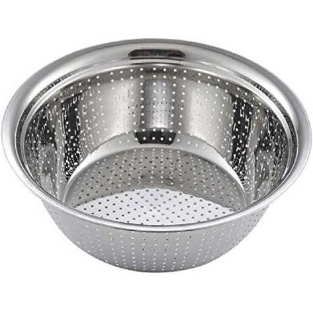 This Large Stainless Steel Colander allows for draining noodles, vegetables and other foods quickly and efficiently, with quality and durability that far surpasses the mesh variety. Made from high quality stainless steel, this footed colander won’t rust, warp or bend Multiple mirror polishing, it is bright, not easy to stick stains, easy to clean. Widening edge curling design, easy to handle, more labor-saving, fine polishing, smooth, without injuring hands It is made of food grade stainless steel. It is durable, high temperature resistant and corrosion resistant. Bottom anti-skid design, the bottom of the basin is treated with wire drawing and grinding to increase friction and play an anti-skid role. This set of rice /Vegetables sieve is convenient to storage, does not occupy space, and is very suitable for home use. Key Features: Color: Silver Stainless steel construction 4.5mm holes for fast and efficient draining Tapered sides and beaded edges for more secure grip Sturdy and lightweight With protruding feet or handles
