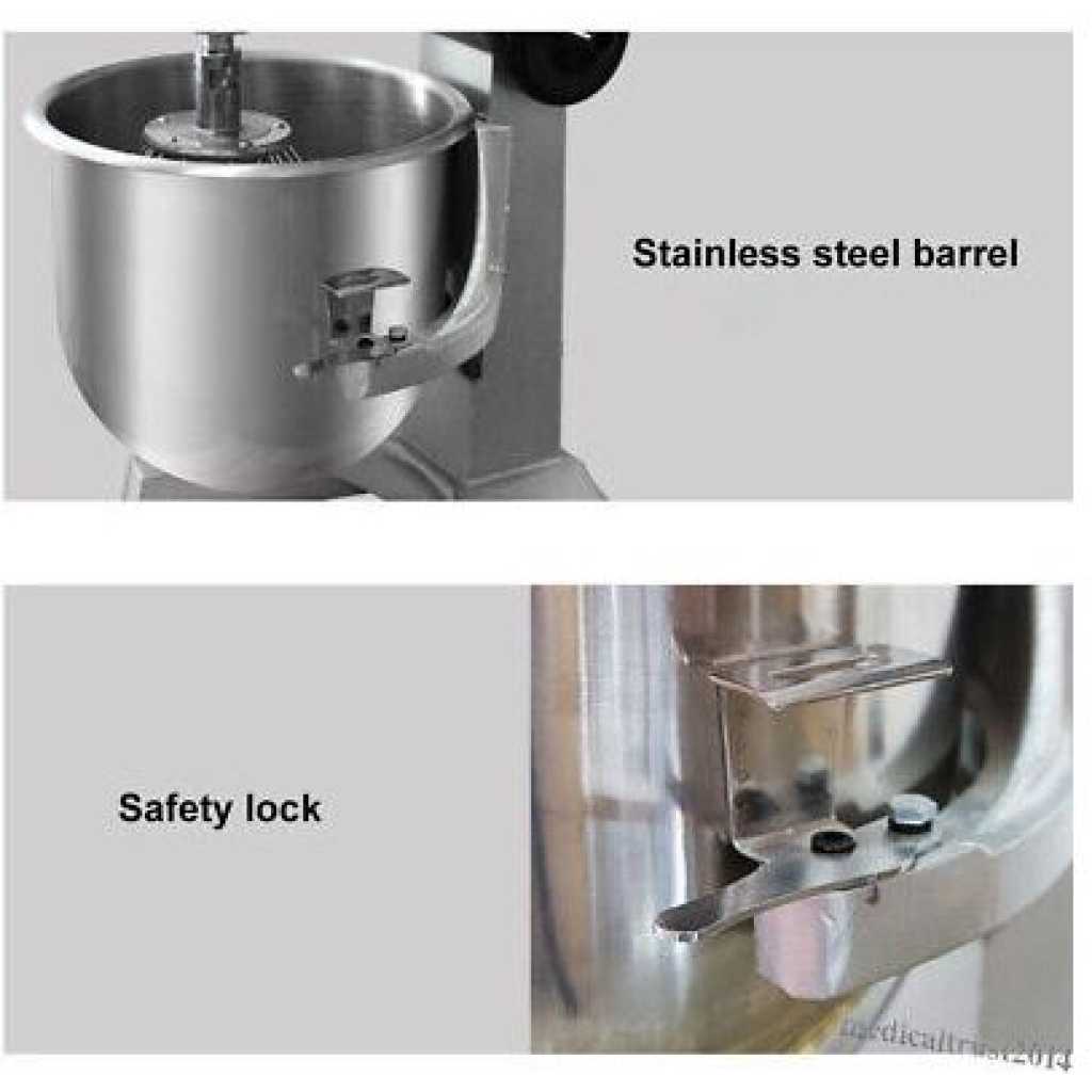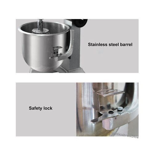 Key Features: 30L Commercial Adjustable Electric Food Dough Stand Mixer Maker Grinder For Kitchen – Silver Skid-resistant feet. Non-slip feet Product Name: Commercial Stainless Steel Electric Stand Mixer Rotation Speed 0~450r/packaging This product can be widely used in central kitchens, chain stores, organizations, schools, cafeteria processing departments, and individual restaurants. With the advantages of clean, sanitation, easy operation, and power saving. Bowl rest mixer stabilizer. Shift and stir feature. With a rotary knob to adjust different working speeds. Multi-application, versatile attachments set includes traditional beater, whisk, and dough hooks. For commercial use and industrial use,1.1kw of peak power makes mixing easy. Working capacity 30L, high efficiency for commercial and industrial purposes. Durable stainless steel body, upscale appearance, and easy to clean. Weight 46kg Bowl Capacity:20L Dimension:650*430*750mm Product Dimension: 560*404*660mm Body materials: Stainless Steel Power 1500W Voltage 210V~240V or 110V Revolution Speed 0~136r/m