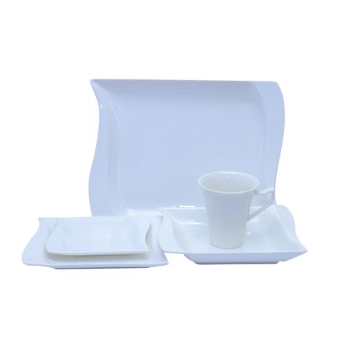 Key Features: 6pcs Dinner Plates 6pcs Side Plates 6pcs Soup Plates 6pcs Tea cups 6pcs Cup saucers. Material. Ceramic