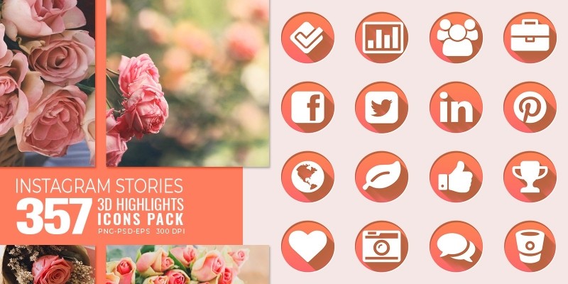 357 3D Instagram Story Highlights Icons Pack. 357 Instagram Story Highlights 3D Icons Set in Color of the year 2019 "Living Coral".