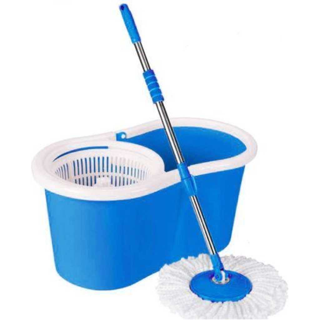 360 Spin Magic Mop with Bucket -Blue Mopping with a traditional mop is tiring enough, especially when you need to manually ring out the mop head with your hands. You can finally ditch the old mop and replace with this easy and effortless mop. Introducing theA Spin Mop with 1pc Mop Head and free another Mop Head . With rotatable swivel mop head, no more getting your hands dirty or even straining your back.A Dries quickly and effortlessly TheA Spin Mop with 2pcs Mop Heads A features a 360-degree rotatable swivel to easily maneuver around furniture and other household objexts so that you can get into those hard to reach corners and crevices without straining your back. The mop head is made of microfiber that absorbs quickly and thoroughly dirt or spills. From marble and tiles to laminates and wooden floors, theA Spin Mop with 2pcs Mop Heads A wipes them clean.A No more getting your hands dirty With theA Spin Mop with 2pcs Mop Heads , you donat have to go through the trouble of ringing the mop head with your bare hands. Thanks to the rotatable spin, all you need to do is simply place the rotating mop head into the unique spinning bucket and push down to spin and dry the mop. This Magic Mop makes your life even easier with the soap dispenser that you can easily control the amount of soap you need to use. Whatas more, the handle of this durable mop is ergonomically-designed and lightweight to make your mopping experience less tiring.A Machine washable TheA Spin Mop with 2pcs Mop Heads A comes with a mop head that is removable, reusable, and washable. Simply detach the mop head and throw it in the washing machine.A What are you waiting for? Get theA Spin Mop with 2pcs Mop Heads A today! A Product specifications and features Save our hands from touching the dirty and smelly water. Save time,Save Energy. 360 Degree spinning mop head. Extendable / retractable mop pole. Powerful spin basket dries efficiently. Durable bucket and handle. No Electricity required. Saves Water