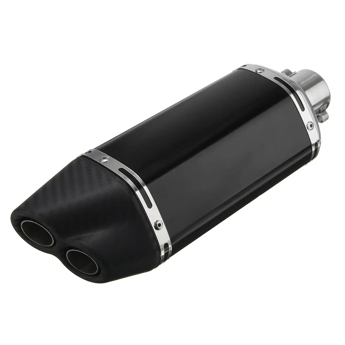 38-51mm Dobbelt Luftudløb Udstødningslyddæmper Rør Motorcykel Kulstof Rustfrit Stål