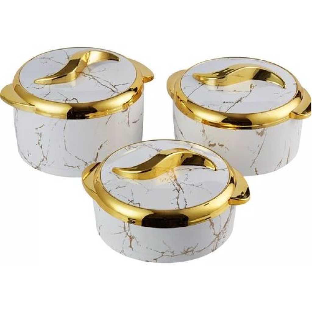 3Pc Set 1.5/2/2.5 L Food Warmer Thermal Insulation Hot Pot Casserole Lunch Boxes – Multicolors The three hot pots within this set all exhibit a sleek and contemporary look, ideal for home-cooked family meals or special occasions. These modern casserole pots are innovatively designed with a stainless steel interior surface and a double-walled exterior, allowing superb preservation of food’s initial temperature when placed in the pots. The casserole pots are made from 100% food-grade materials meaning food is always served fresh-tasting and safely. Their outer casing incredibly easy to wipe clean and comes in two, dual-tone color options – white and silver or black and silver – so you can select the best match to beautifully complement your kitchen. Round Casserole is not oven safe and is not intended to be used for cooking. Fiesta hot pots are double-walled, with a stainless-steel inner surface to keep food hot and fresh-tasting for hours. Featuring a smart dual-tone outer finish, these insulated casseroles are simple to use, and elegantly designed to take center-stage at your dining table.