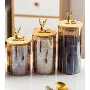 3PC Square Airtight Storage Pantry Food Glass Jars Bamboo Clamp Lids- Clear. Why hide your pantry items behind closed doors when these modern glass containers with bamboo lids add understated style to your kitchen? They won’t hold large quantities like a full flour jar, but they’re perfect as a nuts container, herb container, or small candy jar for display or kitchen storage. Some glass pantry storage containers with lids only provide one thing but these glass jars with wood lids are both beautiful and functional in your pantry. The star of the show is the hermetically sealed clamp lock and BPA-free seal that keeps your food fresher than ever while preventing odors from escaping. In fact, we couldn’t make them any more airtight! The JoyJolt Clamp Lock kitchen canisters range comes in 12 fl oz, 19 fl oz, and 27 fl oz. So whether it’s lentils or pasta, coffee or tea, there’s a kitchen jar to fit your food! Can’t find the motivation to get organized? These glass jars with wood lids will inspire you to get started today. Herb containers, coffee jars,s or salt jars! Unleash your inner Marie Kondo with tidy rows of matching glass storage jars and remember to take a social media-worthy photo of your newly organized pantry! This glass jar with bamboo lid 2pc set makes a lovely and practical gift. Gifts for women, gifts for men, gifts for mom, or gifts for anyone with a kitchen! Bring them organizational joy with Jars by JoyJolt! • 3 Borosilicate Glass Jars with Airtight Bamboo Lids • 12, 19, or 27 fl oz capacity • Airtight, Hermetically Sealed Lids • Lightweight, but Durable • Easy To Clean: Wide mouth that’s easy to hand wash • Gift Boxed with Secure Padding