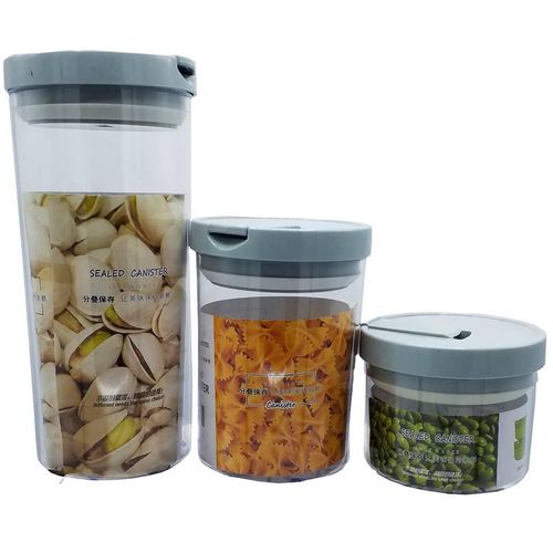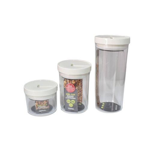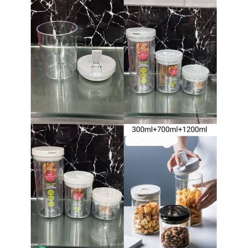 Food grade material: food storage container is made of food grade PS material, no BPA, no toxic and no odor, it is safer to store food. Transparent containers allow you to sort and retrieve groceries conveniently. You can also keep food in the refrigerator at 0-80℃. Multifunctional: It uses high-quality silicone sealing ring and uses vacuum pump principle to effectively remove the air in the tank and has a good sealing effect. It is not only suitable for storage containers, but also for refrigerators and freezer containers for vegetables, salads and fruits. Keep your favorite foods safe in these food grade sealed containers and keep them fresh for a long time. Locking Mechanism: Easy to lock the lid, the top lid can be opened, press down , to close. Once the ring is pressed down on the seal, the design makes the can absolutely airtight and insulated. The silicone seal of the container improves its leakproof performance. In addition, it is transparent, dustproof and insect proof. 6-piece set: The set has 3 different sizes of cans: 2 large containers (1.2 liters / 6 cups) 10 x 20.5 cm, perfect for keeping biscuits fresh, 2 small containers (0.8 liters / 3.6 cups), 10 x 15.5 cm, and 2 mini containers (0.5 liters / 1.4), 10 x 10.5 cm . With stackable and modular design, suitable for all dry foods such as flour, sugar, solid foods, snacks, nuts, candies and spices. 100% Satisfaction Guarantee: The food storage box is a perfect gift for friends and families. We promise to bring you the best shopping experience. Please do not hesitate to contact us if you have any problem, we will solve it sooner within 24 hours. Product Description Size:Set of 6< br> Functionality Made of food-grade PS material, high quality, odorless and toxic. Special locking of the lid, the container’s silicone gasket improves its sealing performance. Thanks to the stackable and modular design, the space used is maximized. Unique box body design, convenient to put in the refrigerator, saves a lot of space Can contain all kinds of food, such as candy, grain, rice, etc. FEATURE: Product quality level: food grade< br> Cover Material: Plastic + Silicone Container Material: Plastic Features: Recyclable / Healthy / Stackable Tolerable Temperature Range: 0-80°C Color: White Lid + Transparent Containers Package Includes: 2 x small containers (0.5 liter / 1.4 cup) Ideal for sugar, baby food, … 2 x medium containers (0.8 liters / 3.6 cups) Ideal for biscuits …. 2 x large containers (1 .2 liters / 6 cups) Perfect for grains… How to clean the lid 1. Remove the jar lid and place on a flat surface 2. Press firmly on the sides of the Cover to squeeze them. 3. Slide the O-ring forward or backward (note the O-ring is connected to a groove). The sealing ring slides off the lid and comes off. 4.The lid is disassembled into individual parts, the lid can be cleaned.