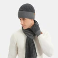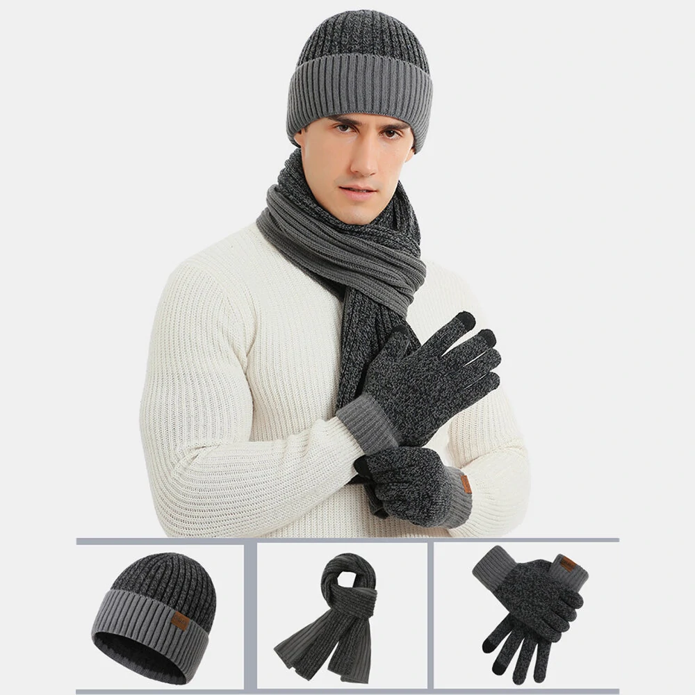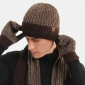 3PCS Unisex Strikket Hat Tørklæde Handsker Sæt Tyk Varmt Tørklæde Handsker Farve Matchende Beanie Hat