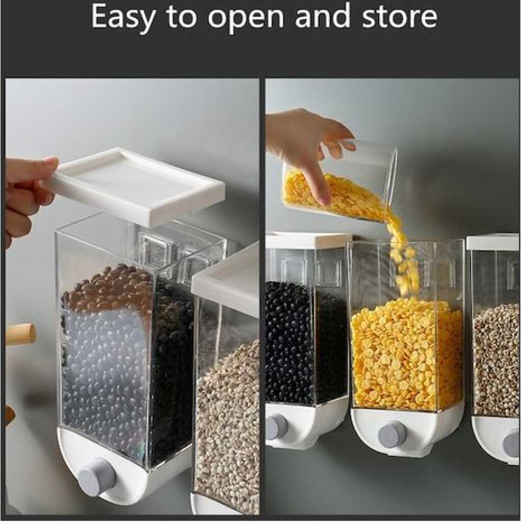 3Piece Wall-Mounted Cereal Dispenser, Food Storage Container Organizer. This is the new design and high-quality home kitchen Indispensable Cereal Dispenser prevents cereal or other dry foods from going stale. Kids will find it fun turning the knob and watching the cereal fall perfectly into their bowl while moms can be assured that kids will not be spilling cereal all over the kitchen. Best of all, the dispenser is hermetically sealed which preserves the freshness of dry food. Simply place a bowl under the dispenser and twist a knob to get a controlled portion. The simple, elegant design features one clear, see-through, high-quality plastic container which holds one box of cereal. Very easy to clean and fit on most countertops. Now your kids can enjoy cereal and dry food in style… The box cover is also a measuring cup, which can seal the box as well as measure the food. Unique box body design, convenient to put into the refrigerator, save much place. Transparent body, food in the box can be seen, and large capacity Can hold all kinds of food, like candy, grains, rice, and so on. 100% Brand new and high quality. Material: ABS Capacity: 1000ML Package Includes: 3 x Food Storage Box Key Features: 3Piece Wall-Mounted Cereal Dispenser, Food Storage Container Organizer. Has fun turning which allows cereal to fall perfectly into their bowl. The dispenser is hermetically sealed. Each storage container has a hermetic locking system for a watertight seal. Containers are suitable for flour, snack, Brown sugar, etc. The simple, elegant design features one clear, see-through High-quality plastic container which holds one box of cereal. Very easy to clean and fit on most countertops. Food storage containers with lids feature a special non-slip design. The storage container is stackable and modular This transparent container is also very sturdy with a secure lid for easy use.