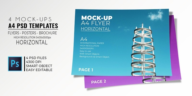 4 Horizontal Mock-Up Flyer PSD Templates A4