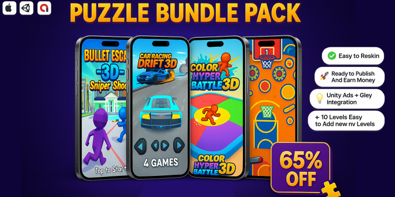 4-In-1 Hyper Casual Mobile Games Bundle. premium source code bundle featuring 4 addictive hyper-casual and puzzle games! Fully optimized for Android & iOS, easy to res
