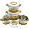 A Set Of Beautiful Serving Dishes .These are great dishes as they can keep your food hot for a considerably long period of time. They are also very durable and aesthetically pleasant. These hot-pot set will bring a splash of contemporary flair as well as functionality to your dining experience. These modern thermal insulated hot pots are the perfect way to keep your hot food warm or cold food chilled! Ideal for functions, dinner parties, barbecues and much more they make a stunning yet practical serving dish. The interior bowl is forged from high quality food-grade stainless steel, which retains heat for up to 6 hours. This superior material is both hygienic and odourless, allowing your food to taste freshly cooked hours after preparation. The food safe plastic outer casing is incredibly easy to wipe clean. In useful ranges of different sizes, Olympic hot-pots are wonderfully easy to store and care for, bringing delight for many meals to come. Filled with a highly efficient thermal insulation, the double walled plastic body and stainless steel inner surface allows them to perfectly preserve the temperature of a dish effectively for hours at a time. These pots are incredibly durable and resistant to daily knocks and spills. The serving dishes with lids collection will have you covered whether you’re preparing snacks, side dishes or main meals. Due to their efficient construction, they are extremely lightweight and so reduce the load when transporting food, and when not in use they can safely stack on top of each for easy storage