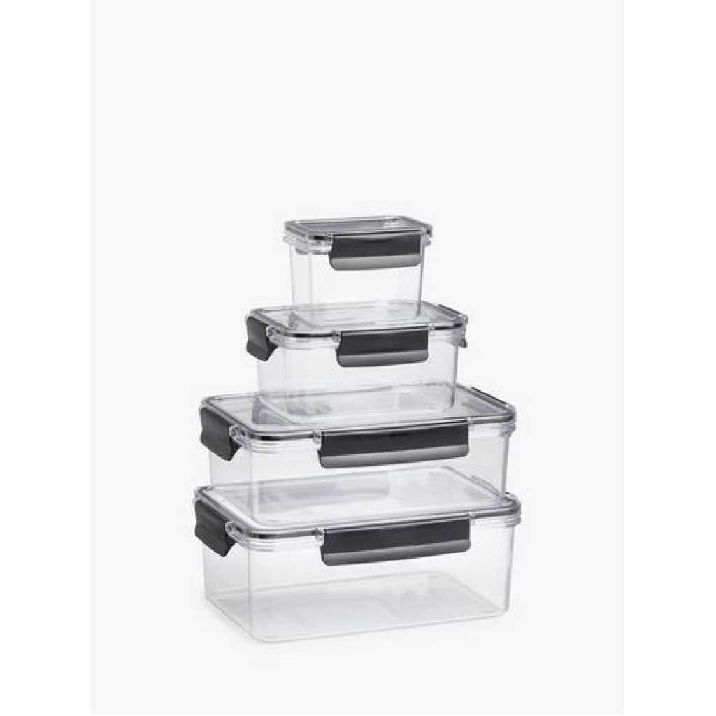 Product Details Guaranteed not to leak, the Rubbermaid Brilliance Food Storage Containers are intelligently crafted and beautifully designed. These BPA-free plastic containers are built with an airtight leak-proof seal and secure latches. Crystal-clear lids and bases make it easy to see what’s inside and are stain- and odor-resistant, which helps them stay looking like-new. Featuring splatter-free lid design and built-in vents that allow steam to escape so you can conveniently microwave food without removing the lid. These food storage containers also save space with a modular design that perfectly stacks in your fridge or lunch bag. Includes: 3- 9.6 Cup Containers w/Lids Features: 100% leak proof, guaranteed. Airtight food storage container seal helps prevent spills and leaks. Crystal-clear, BPA-free Tritan lids and bases feature 360 degree clarity. Splatter-resistant microwaving with built-in vents under latches. Resists stains and odors for long-lasting use. Stacks perfectly to one another to save space and stay organized in the pantry or fridge. Dishwasher, microwave and freezer safe. This set of four clear acrylic food containers is the perfect solution for keeping your kitchen organized. With a unique stacking design, you can neatly store snacks and leftovers and maximize space in your pantry or fridge. The BPA-free construction will keep your food safe and secure. Key Features: ????for Fresh Fruits and Vegetables ????Moisture Resistance ????Durable ????Transparent ???? Set have 3pcs ????Size 460ml, 800ml and 1100m