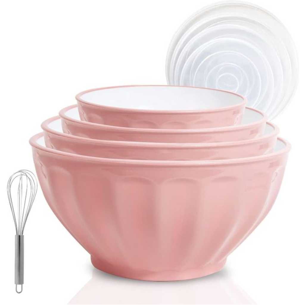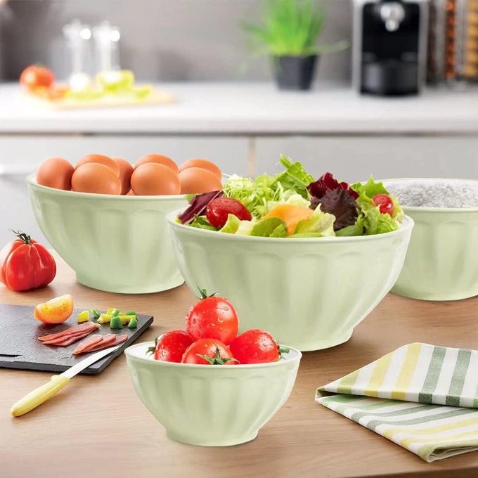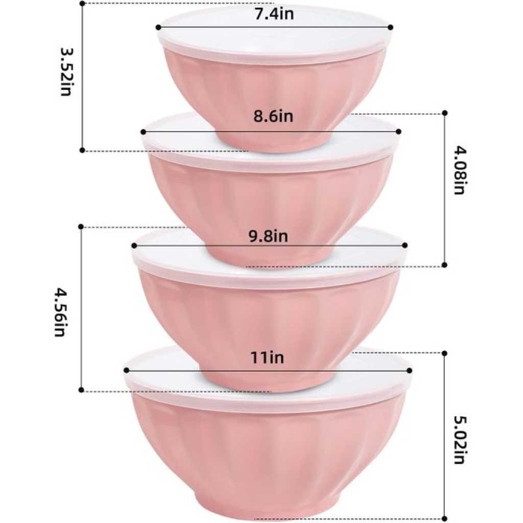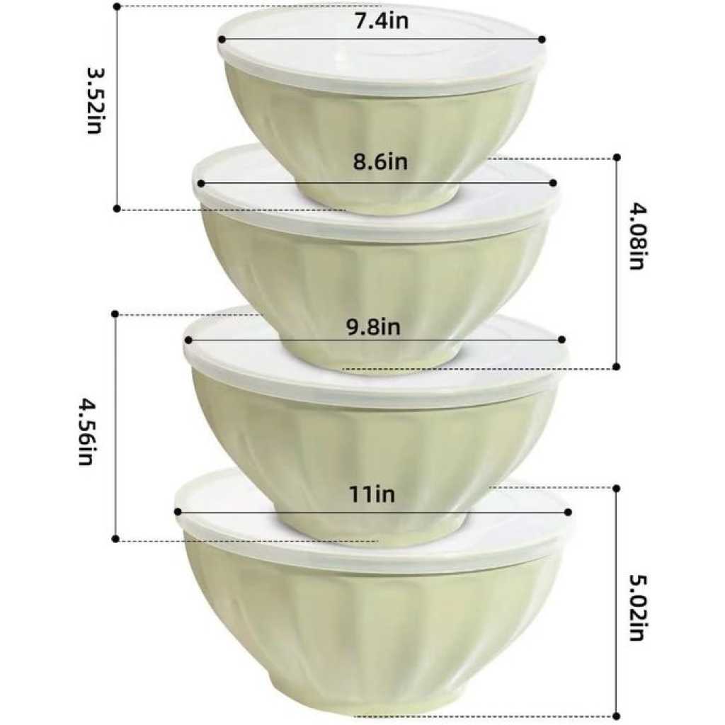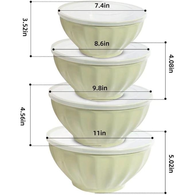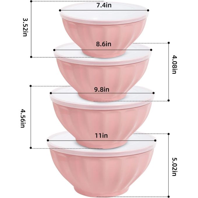 4 Piece Large Plastic Nesting Mixing Bowls With Lids Set,Includes 4 Microwave safe Mixing Bowl For Kitchen Prepping, Baking,Cooking Food Salad Bowl Large Deep Versatile Bowl:the large mixing bowl is large enough to make a double batch of cookies in , toss salad for a large family.you can also used extra large mixing bowl for mixing cake mix,The medium size bowl will work for two dozen cookies, or mixing hambuger meat up in with seasoning. Smaller bowl is great for whisking eggs. Easy to Carry:These Nesting bowls Great for mixing, prepping, and storing as well as serving food at picnics and potlucks. Storage Simple:these big mixing bowls can also double as great ways to serve some popcorn (with assorted seasonings) or store washed and cut fruit or salads in the fridge.the mixing batter bowl set of 4 bowls , nest together for easy storage. Microwave and Dishwasher Safe:The plastic bowls with lids easy to hold ,don’t break easily. The salad bowl with lid also microwave safe,and dishwasher safe. Key Features: 4 Piece Large Plastic Nesting Mixing Bowls With Lids Set,Includes 4 Microwave safe Mixing Bowl For Kitchen Prepping, Baking,Cooking Food Salad Bowl Large Deep Versatile Bowl:the large mixing bowl is large enough to make a double batch of cookies in , toss salad for a large family.you can also used extra large mixing bowl for mixing cake mix,The medium size bowl will work for two dozen cookies, or mixing hambuger meat up in with seasoning. Smaller bowl is great for whisking eggs. Easy to Carry:These Nesting bowls Great for mixing, prepping, and storing as well as serving food at picnics and potlucks. Storage Simple:these big mixing bowls can also double as great ways to serve some popcorn (with assorted seasonings) or store washed and cut fruit or salads in the fridge.the mixing batter bowl set of 4 bowls , nest together for easy storage. Microwave and Dishwasher Safe:The plastic bowls with lids easy to hold ,don’t break easily. The salad bowl with lid also microwave safe,and dishwasher safe.