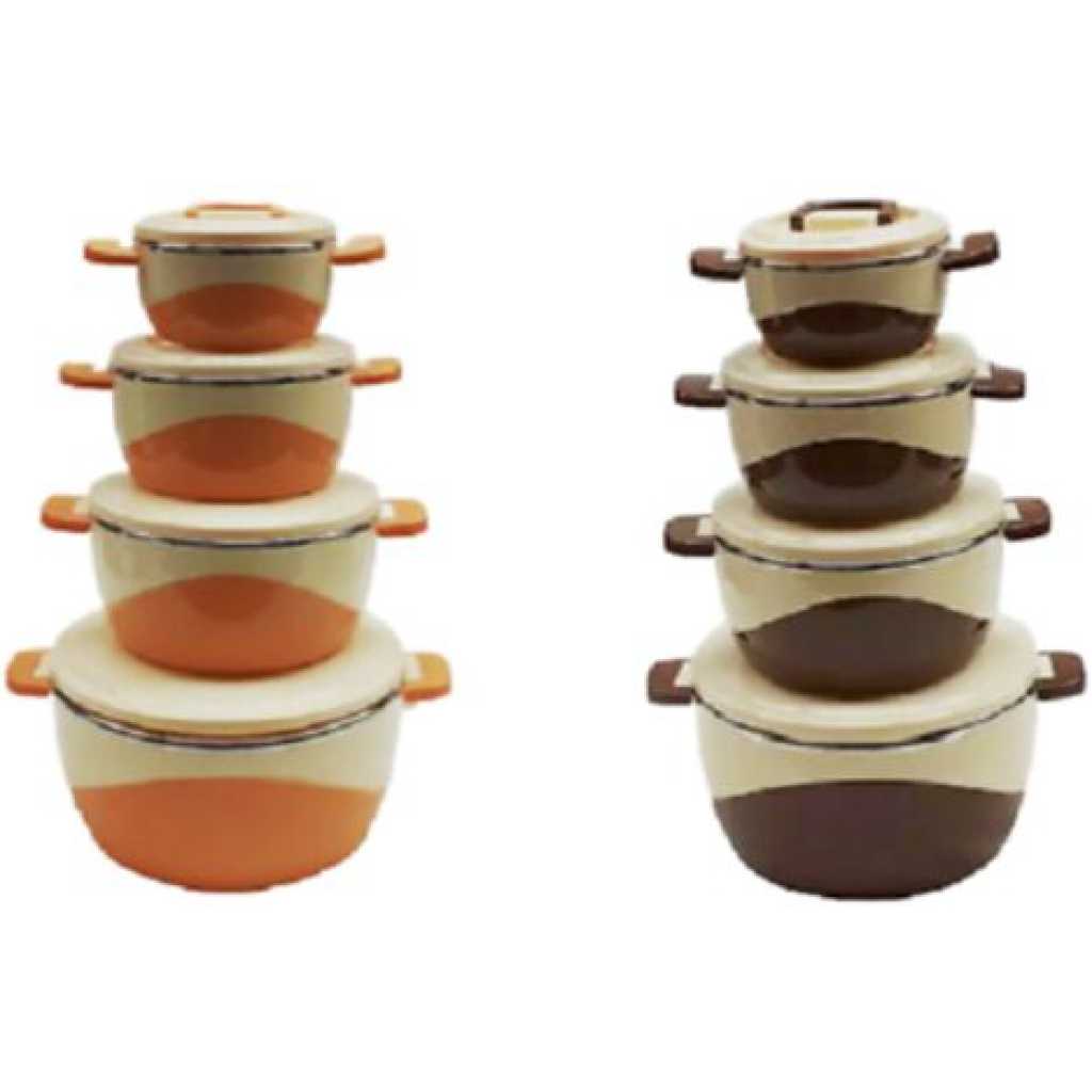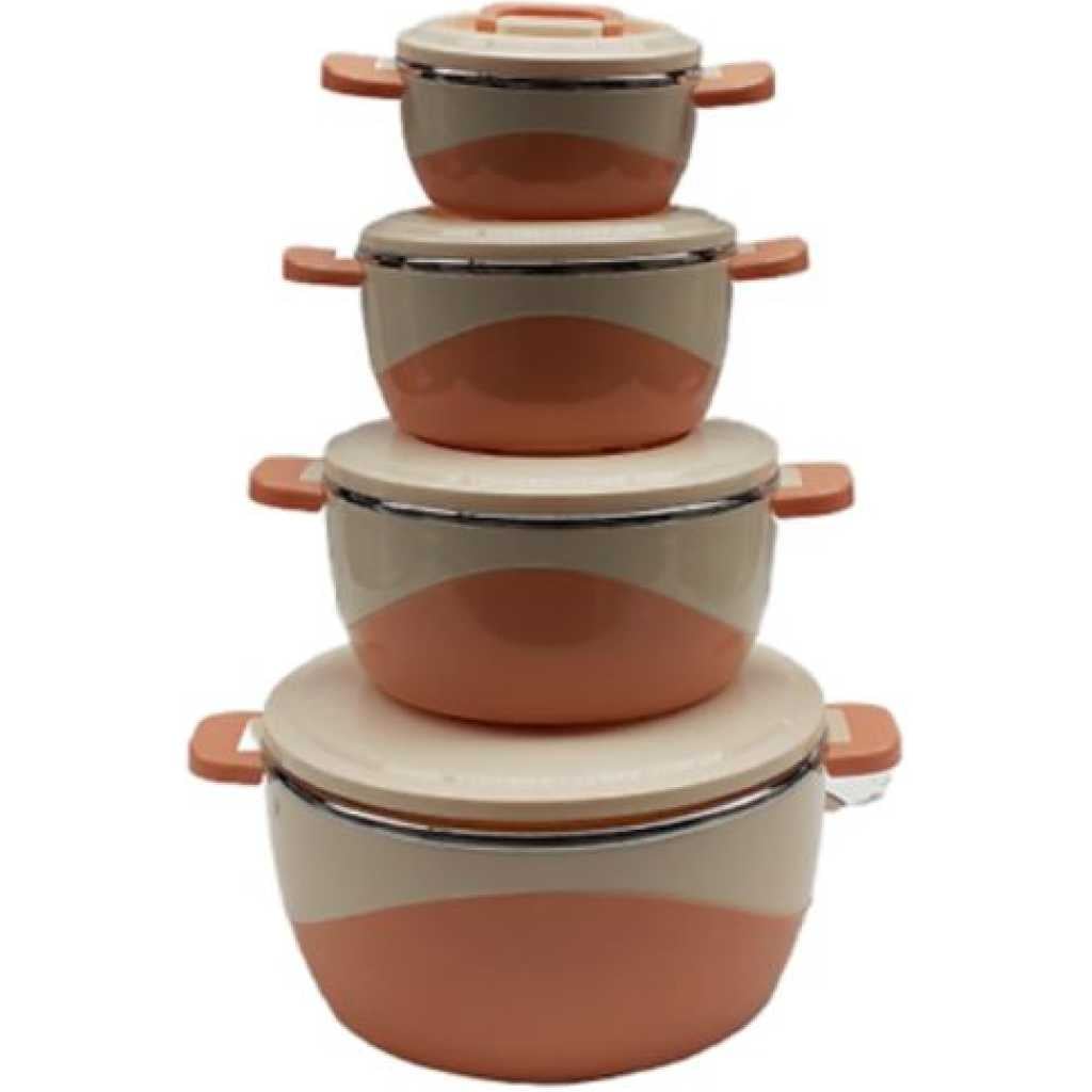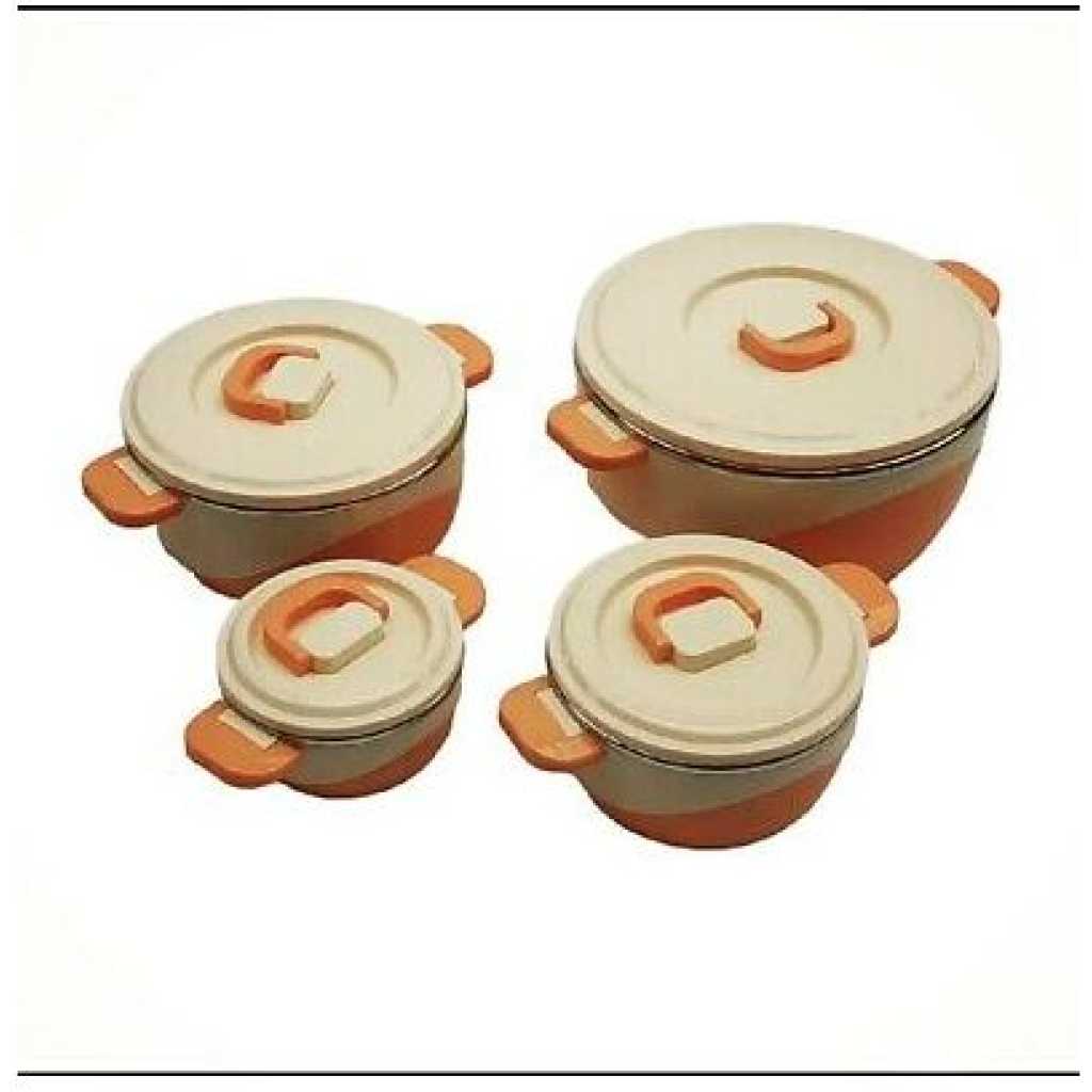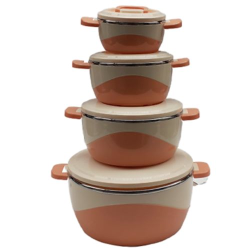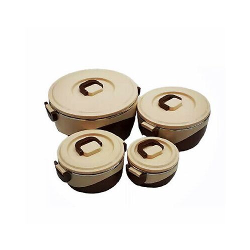 4 Pieces Insulated Hot Pot Dishes Food Container Casseroles. The three hot pots within this set all exhibit a sleek and contemporary look, ideal for home-cooked family meals or special occasions. These modern casserole pots are innovatively designed with a stainless steel interior surface and a double-walled exterior, allowing superb preservation of food’s initial temperature when placed in the pots. The casserole pots are made from 100% food-grade materials meaning food is always served fresh-tasting and safely. Their outer casing is incredibly easy to wipe clean and comes in two, dual-tone color options – white and silver or black and silver – so you can select the best match to beautifully complement your kitchen. Round Casserole is not oven safe and is not intended to be used for cooking. Fiesta hot pots are double-walled, with a stainless-steel inner surface to keep food hot and fresh-tasting for hours. Featuring a smart dual-tone outer finish, these insulated casseroles are simple to use, and elegantly designed to take center stage at your dining table. Key Features: 4 Pieces Insulated Hot Pot Dishes Food Container Casseroles. Easy to clean food-safe materials – stainless steel inside and plastic outer insulation. Helps retain the temperature (hot or cold) and nutritional value of food for up to 6 hours. Easy to store. Material of plastic. 4 Piece Casseroles.