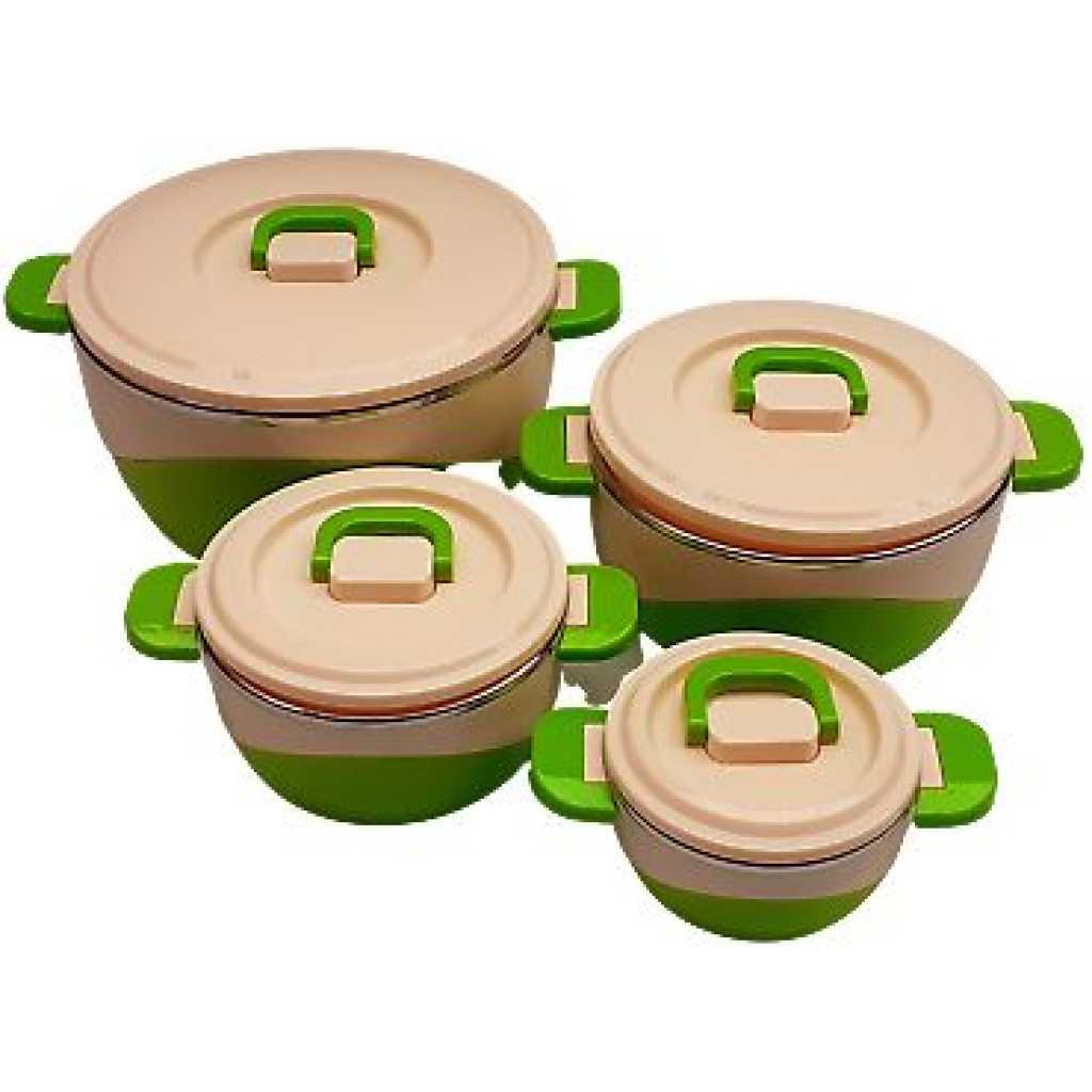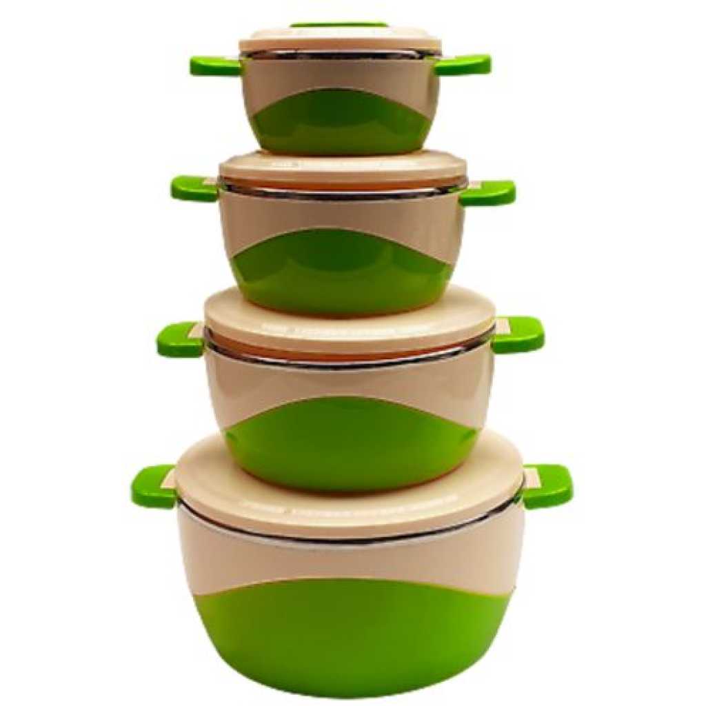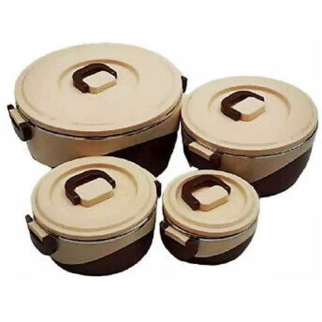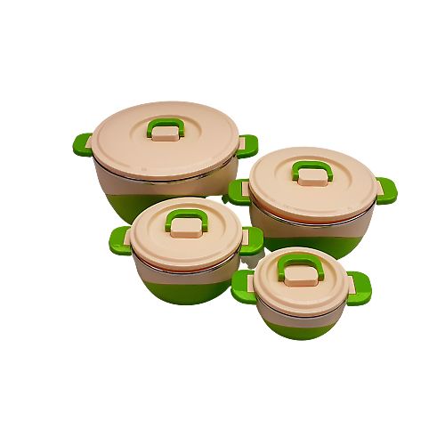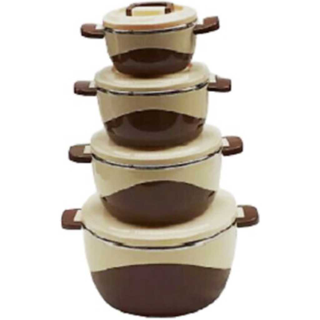 4 Pieces Insulated Hot Pot Dishes Food Container Casseroles. The three hot pots within this set all exhibit a sleek and contemporary look, ideal for home-cooked family meals or special occasions. These modern casserole pots are innovatively designed with a stainless steel interior surface and a double-walled exterior, allowing superb preservation of food’s initial temperature when placed in the pots. The casserole pots are made from 100% food-grade materials meaning food is always served fresh-tasting and safely. Their outer casing is incredibly easy to wipe clean and comes in two, dual-tone color options – white and silver or black and silver – so you can select the best match to beautifully complement your kitchen. Round Casserole is not oven safe and is not intended to be used for cooking. Fiesta hot pots are double-walled, with a stainless-steel inner surface to keep food hot and fresh-tasting for hours. Featuring a smart dual-tone outer finish, these insulated casseroles are simple to use, and elegantly designed to take center stage at your dining table. Key Features: 4 Pieces Insulated Hot Pot Dishes Food Container Casseroles. Easy to clean food-safe materials – stainless steel inside and plastic outer insulation. Helps retain the temperature (hot or cold) and nutritional value of food for up to 6 hours. Easy to store. Material of plastic. 4 Piece Casseroles.